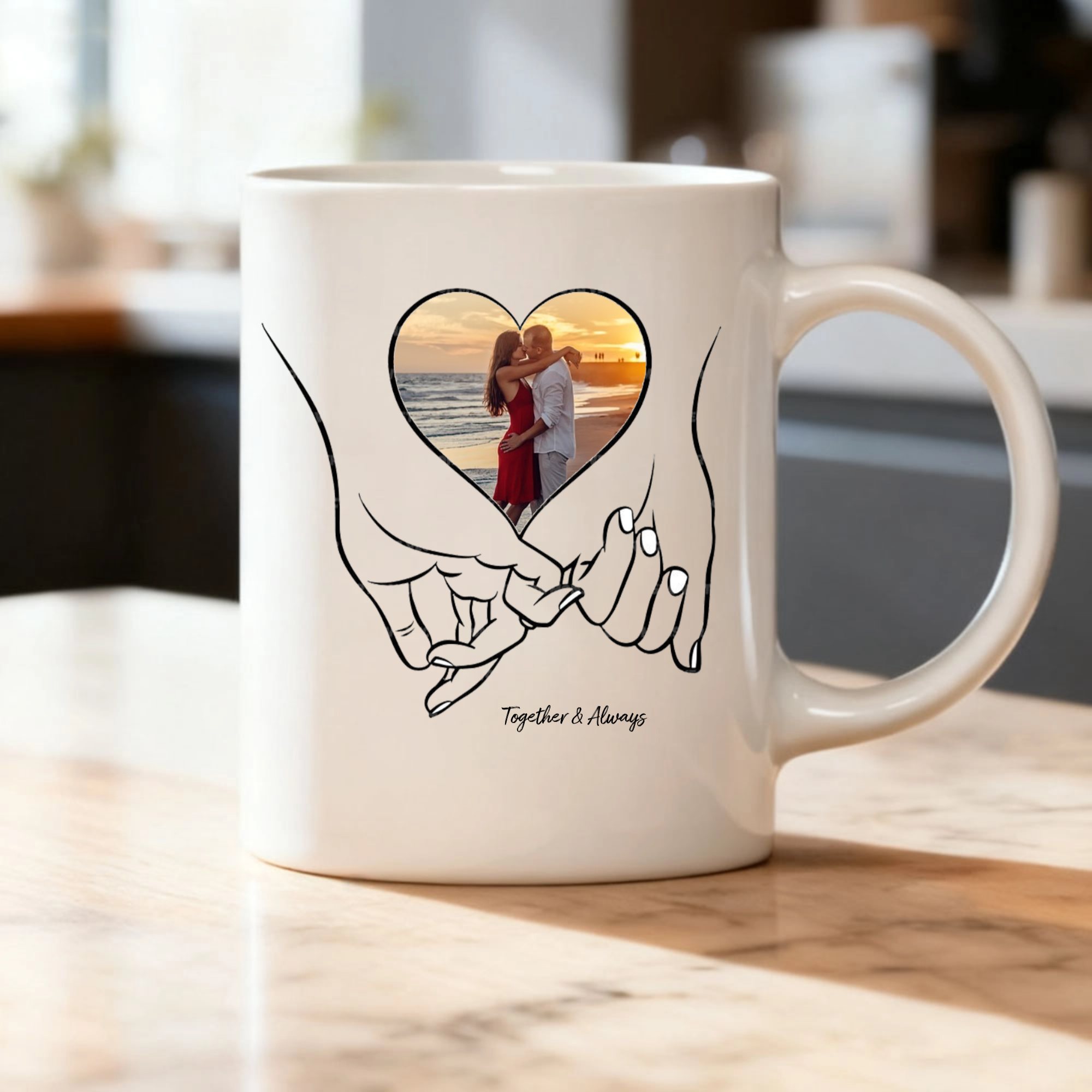 Start your day with a smile! The "Together & Always" Personalized Photo Mug turns your morning coffee or tea into a warm, memorable experience. Upload a special photo and add your custom text to create a unique mug that celebrates your favorite people and moments.