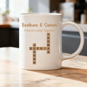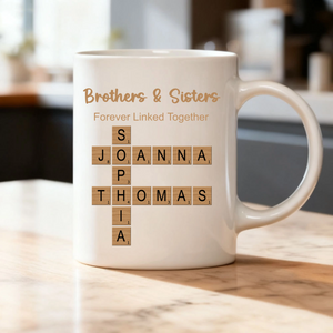Celebrate the unique and unbreakable bond between siblings with our interactive Crossword Puzzle Mug. This 350ml white ceramic mug lets you create a personal tribute by typing in a custom title, a heartfelt message, and the names of your siblings. Watch as they cleverly intertwine in a classic crossword puzzle design on the cup. Whether it's for brothers, sisters, or a mix, it’s a meaningful and playful way to honor your family connection.