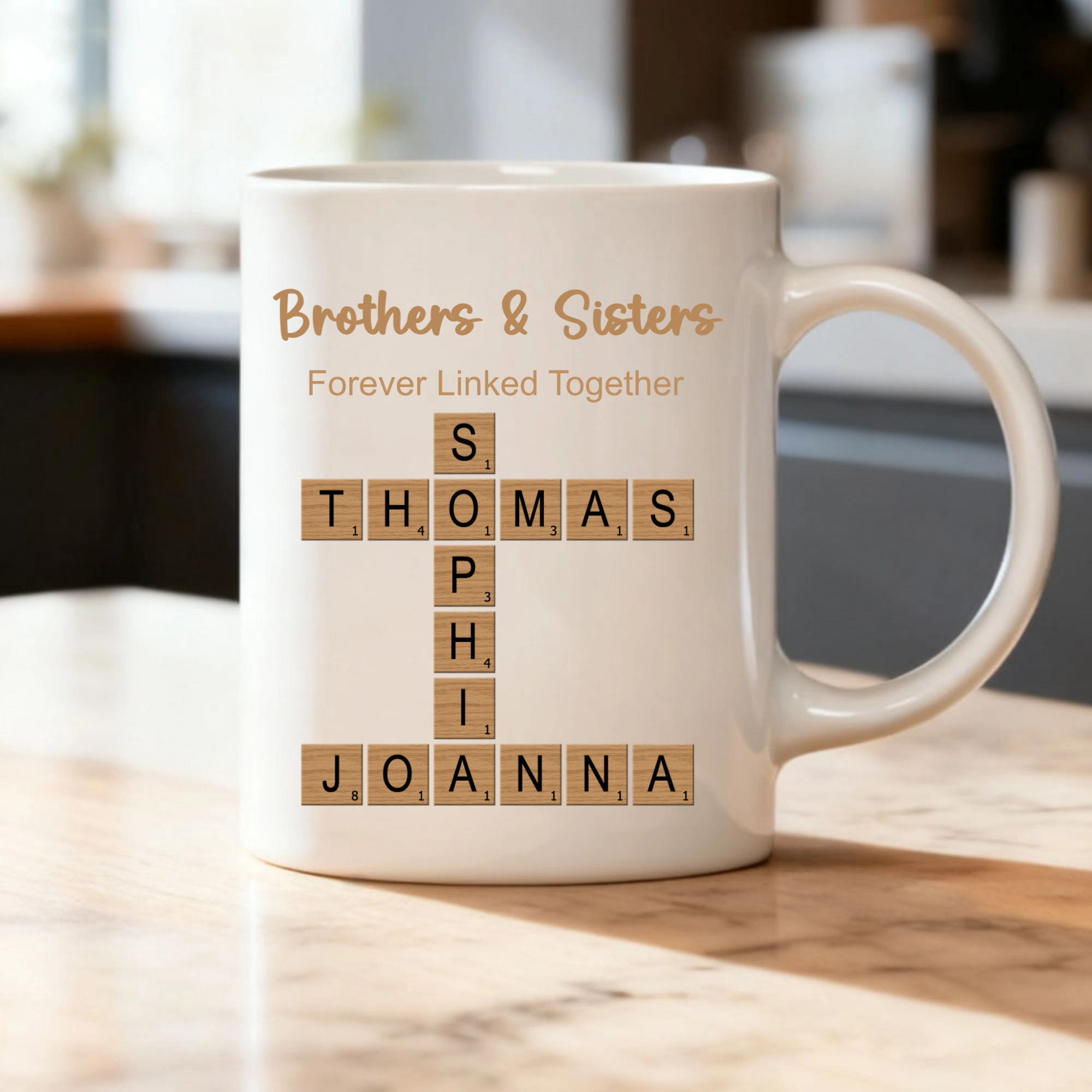 Personalized Name Crossed Mug, ift for Brothers, Sisters, Siblings, Perfect for Family Reunion, Birthday, Christmas Celebration