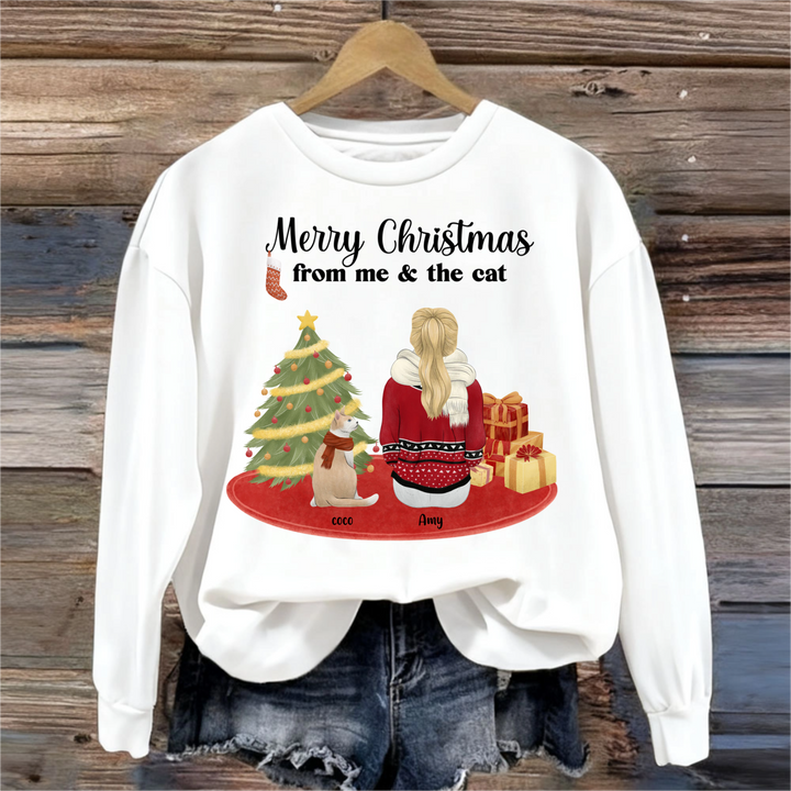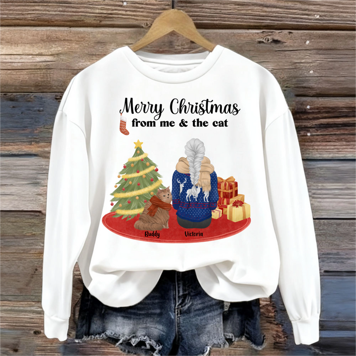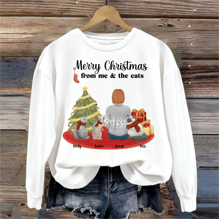 Personalized Merry Christmas From Me & Cats Sweatshirt, Gifts For Family, Cat Lovers