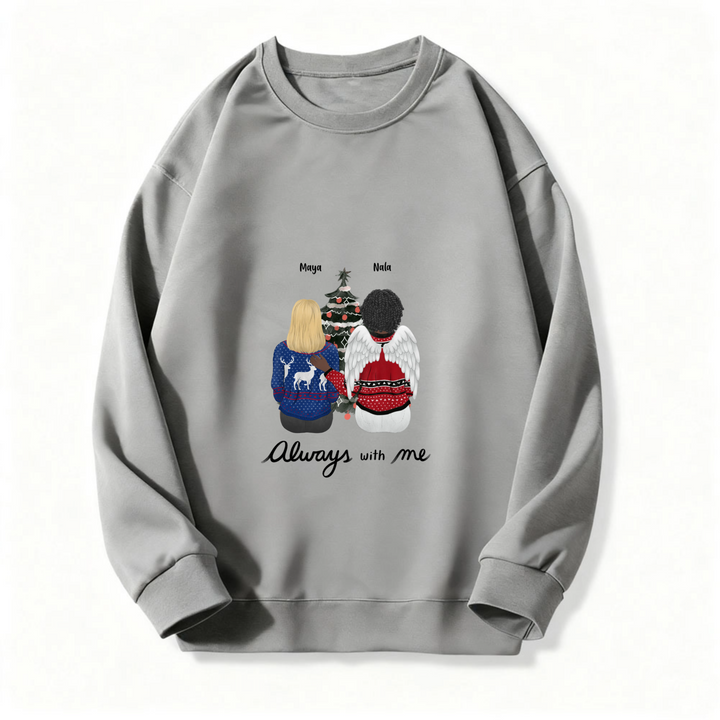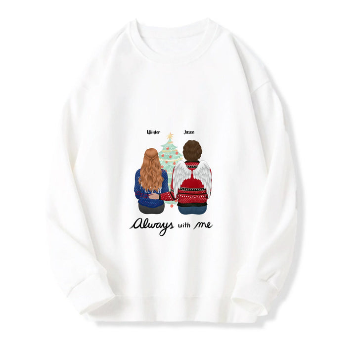 Capture the most precious bond this holiday season with our personalized "Always With Me" Christmas sweatshirt. Featuring a beautiful back-view design of a parent and child cozying up by the Christmas tree, this sweater lets you create a custom wearable memory. Perfect for parents and children to celebrate their unbreakable connection during the most magical time of the year.