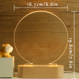 Material: Warm, natural wooden base paired with a clear acrylic circular panel for photo display.