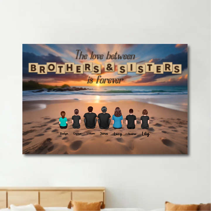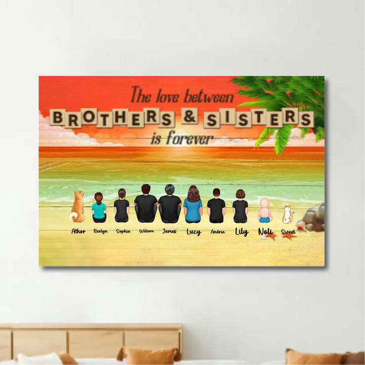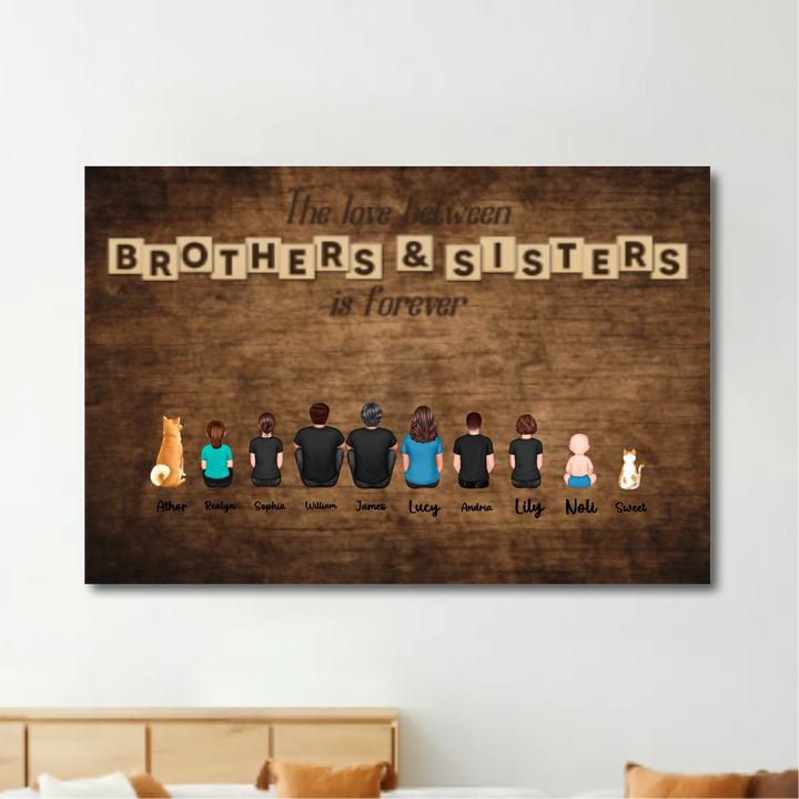 Celebrate the unbreakable bond between brothers and sisters with our personalized "Brothers & Sisters Forever" poster or canvas. This beautifully designed piece serves as a heartfelt gift that captures the essence of sibling love, making it a perfect choice for birthdays, anniversaries, or just because. Each artwork is uniquely customized with the names and characters of your siblings, creating a touching memorial keepsake that will be cherished for years to come.