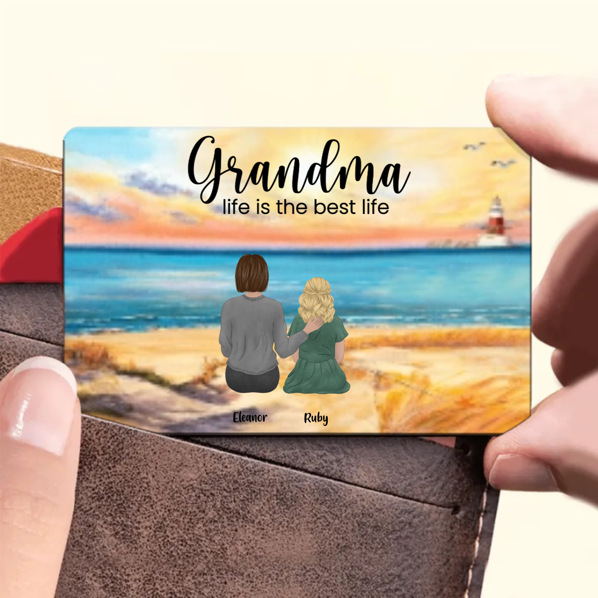Imagine the smile on her face when she carries a beautiful custom portrait of herself with her beloved grandchildren right in her wallet! Our Personalized "Grandma Life is the Best Life" Wallet Card is more than just a practical accessory - it's a moving tribute to the special bond between a grandmother and her grandkids. Every time she opens her wallet, she'll be reminded of the love that makes her life so special.