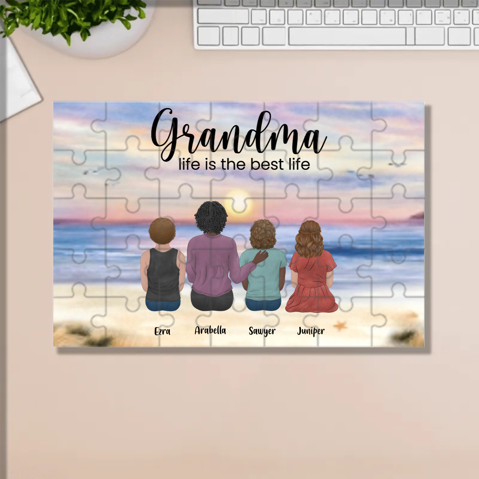 Celebrate the heartwarming joy of grandmotherhood with our personalized "Grandma Life is the Best Life" custom family portrait! This unique plaything lets you create a one-of-a-kind masterpiece featuring grandma surrounded by her beloved grandchildren – a perfect tribute to family bonds and generational love.