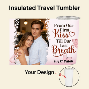 Keep your special moments close with our personalized Insulated Travel Tumbler! This premium 20oz stainless steel cup features your favorite couple photo, a romantic quote of your choice, and both your names. Whether it's from your first kiss to your last breath, or simply celebrating being together, this tumbler turns every sip into a sweet memory. Perfect for daily use, travel, or as a heartfelt gift for your significant other.
