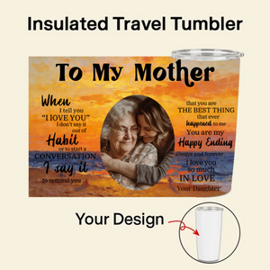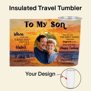 Express your deepest feelings in a way that lasts. This Insulated Travel Tumbler transforms a heartfelt quote into a personalized, daily reminder of your love. Upload a cherished photo, choose a beautiful background, and customize the title and signature for anyone you loveâyour mother, father, son, daughter, or partner. Made with premium materials, itâs more than a drinkware; itâs a tangible token of your affection, keeping their drink and your love at the perfect temperature.