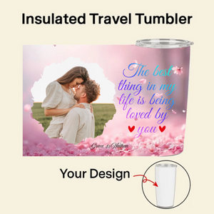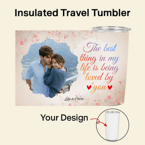 Create a unique and practical daily companion with our personalized Insulated Travel Tumbler. This 20oz stainless steel tumbler features your favorite couple photo, a choice of romantic backgrounds, and meaningful quotes like "The best thing in my life is being loved by you." With double-wall insulation keeping drinks hot for 6-12 hours, it's the perfect way to carry your love story everywhere you go - whether to work, on trips, or during cozy moments at home.