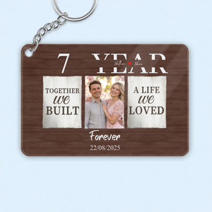 Celebrate the beautiful journey of your love with a tangible token of your years together. Our personalized wooden-texture acrylic keychain is a daily reminder of the life you’ve built. Upload a cherished photo, add your names, mark your anniversary year, and choose a heartfelt closing message. Featuring the iconic phrase "TOGETHER we BUILT A LIFE we LOVED", it’s a wearable tribute to your unique love story.