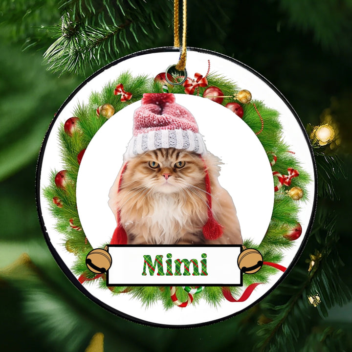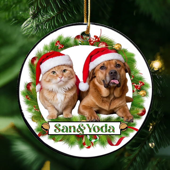 Personalized Christmas Ceramic Round Hanging Ornaments, Paw-fect Gift For Pet Owners