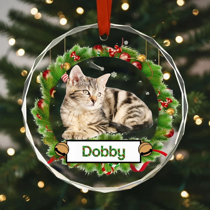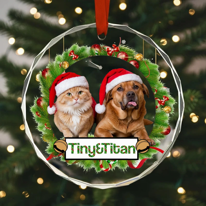 Personalized Christmas Crystal Round Hanging Ornaments, Paw-fect Gift For Pet Owners