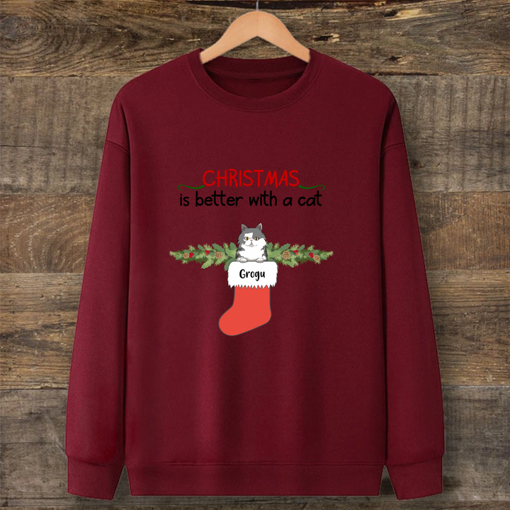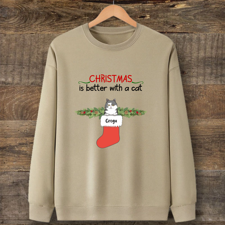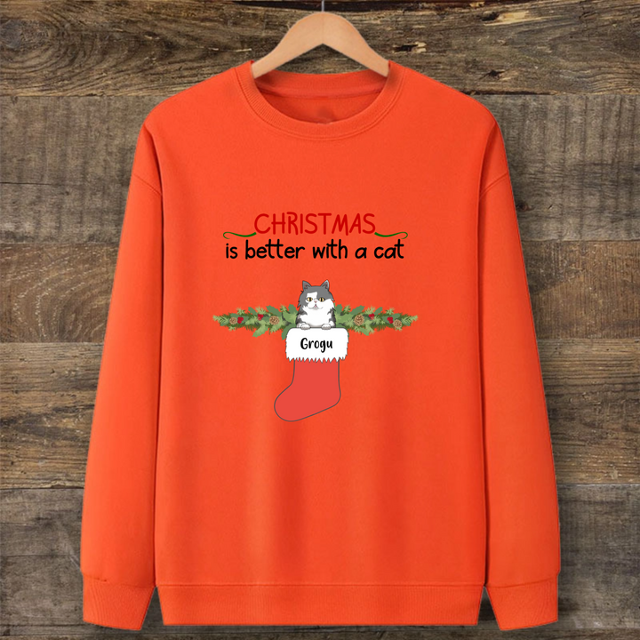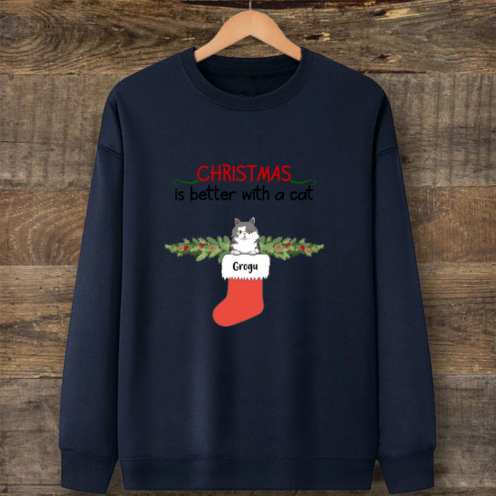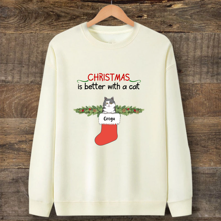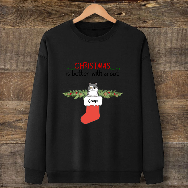Personalized Christmas Is Better with Cats Sweatshirt, Gifts For Family, Cat Lovers