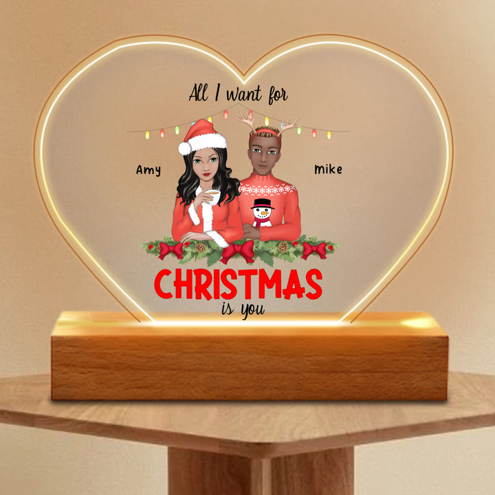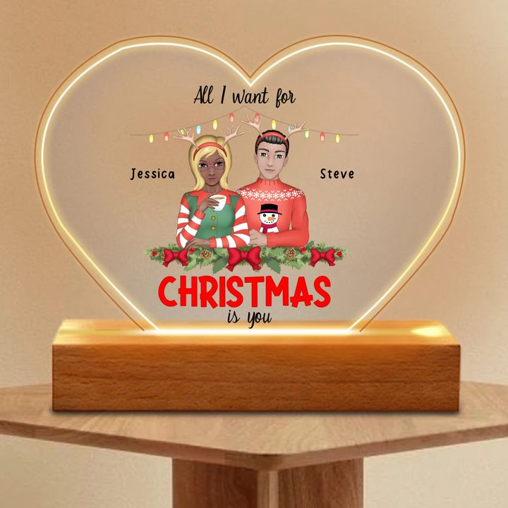Personalized All I Want For Christmas Is You Night Light, Heart-shaped Decor for Couples, Romantic Gift for Christmas & Anniversaries