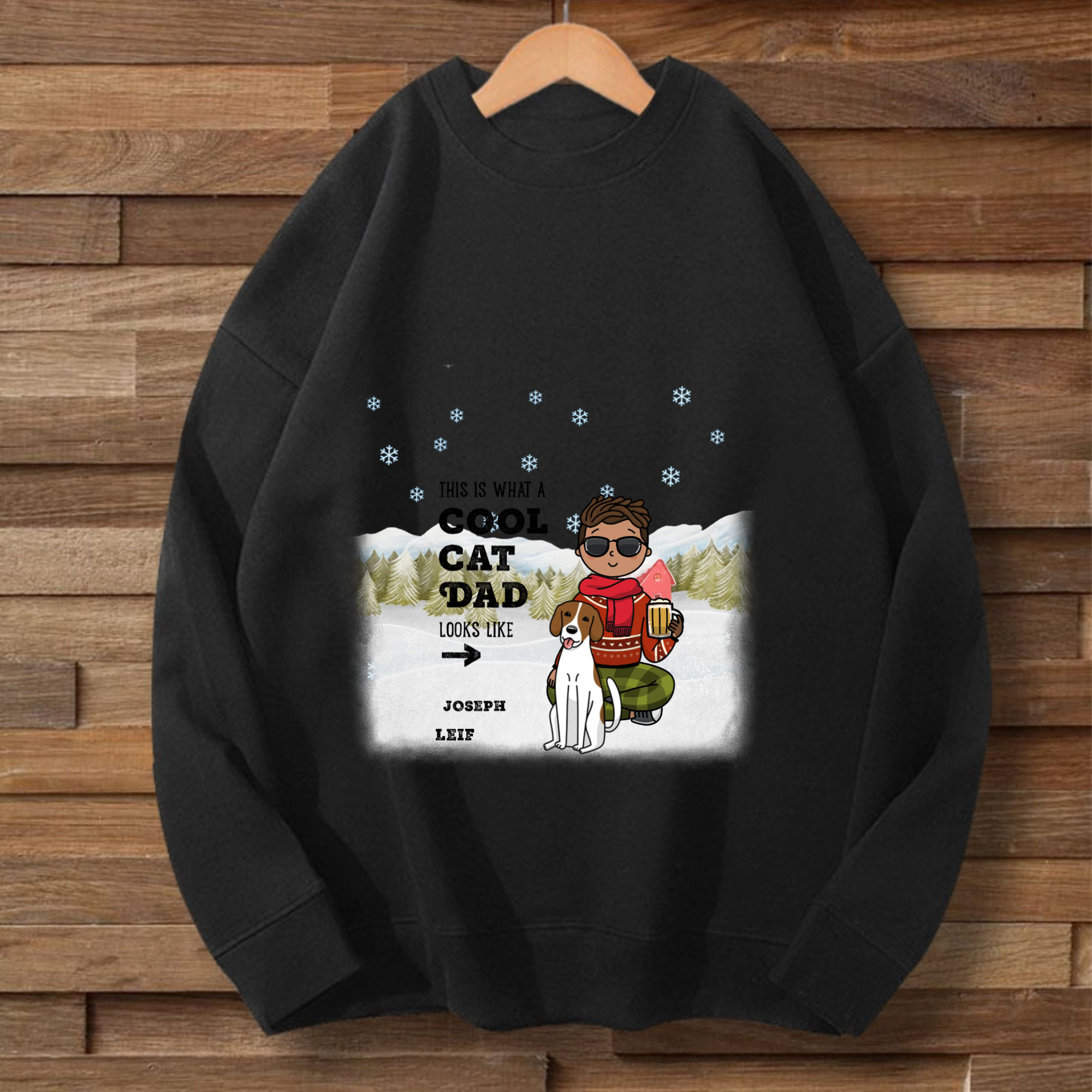 This Is What A Cool Dog Dad Looks Like Personalized Sweatshirt, Holiday Gift For Dog And Cat Lovers, Christmas And Pet Adoption Anniversary