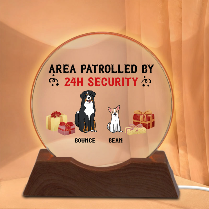 Personalized Area Patrolled By 24H Security Dog Night Lights, Christmas Decor for Dog Lovers, Holiday Gift for Pet Owners