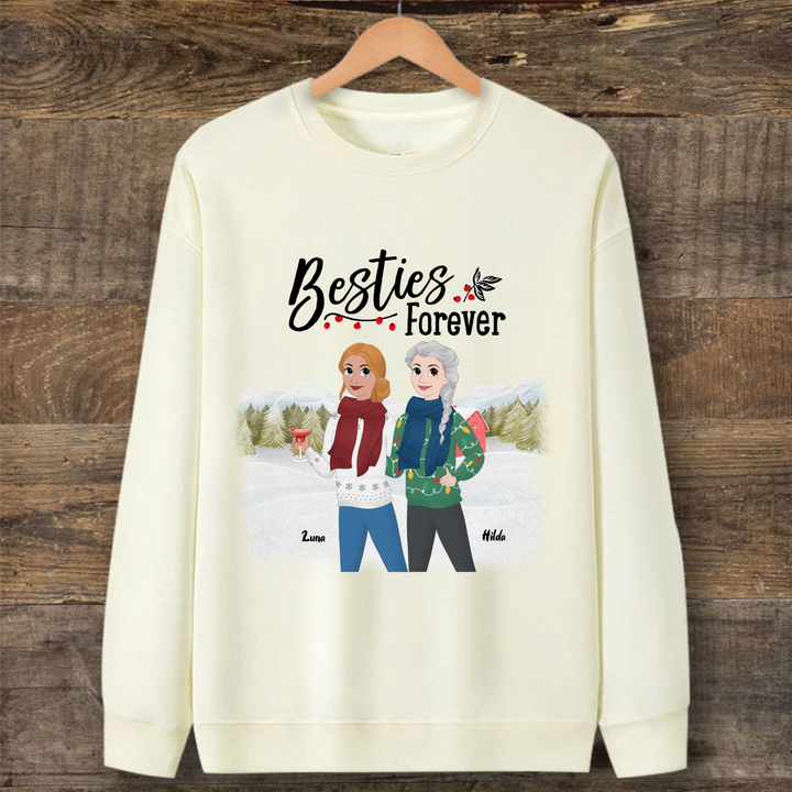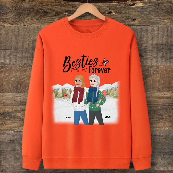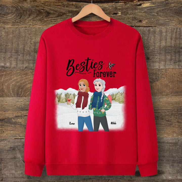 Besties Forever Christmas Personalized Sweatshirt, Friendship Gift For Girls And Best Friends