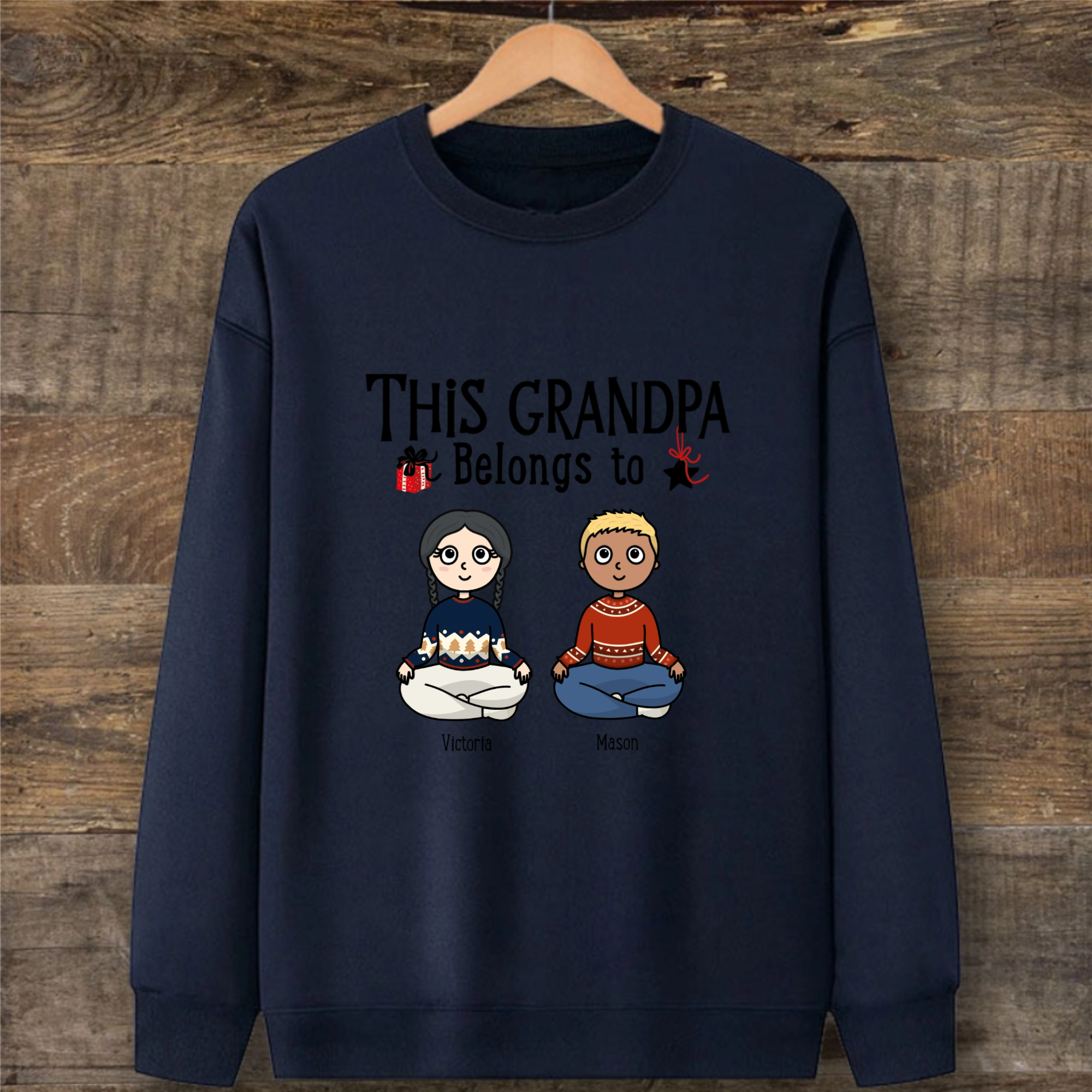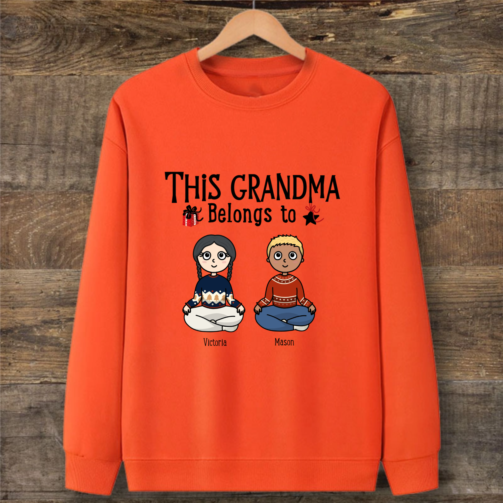 Create a heartwarming tribute that grandparents will treasure! This adorable kawaii-style sweatshirt features the sweet message "This Grandma/Grandpa Belongs To" followed by customizable grandchildren avatars. Perfect for Christmas mornings, family photos, or cozy holiday gatherings.