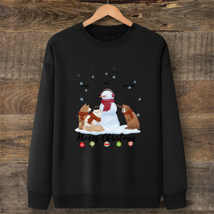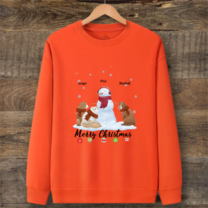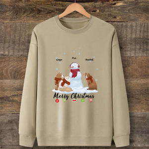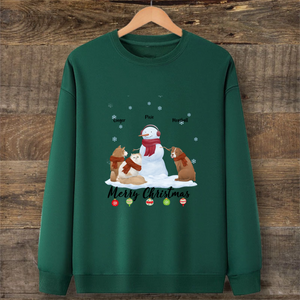 This soft sweatshirt features a charming pencil-style illustration of pets with their backs turned, sitting under a Christmas tree adorned with the message "Merry Christmas." You can customize it with 1 to 5 dogs or cats of different breeds, adding their names for a personal touch. Weighing just 350g, it's lightweight yet warm, perfect for holiday activities.