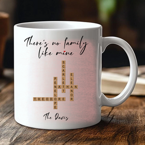 Personalized There's No Family Like Mine Crossword Mug, Heartwarming Gift for Family, Christmas, Reunions and Birthday