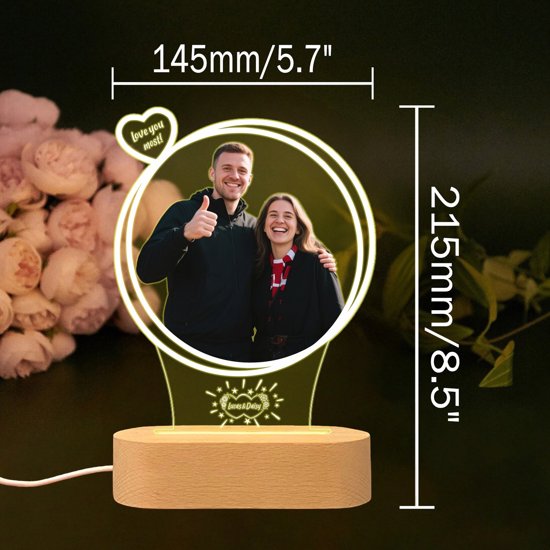 Custom Message: Include names, dates, or special phrases like "I love you"