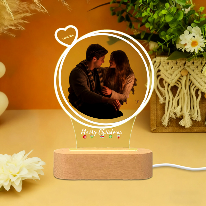 Tags: personalized christmas night light, photo night light, custom holiday decor, merry christmas gift, couple christmas light, family photo night light, holiday bedroom decor, christmas memory light, personalized gift for couples, festive photo display