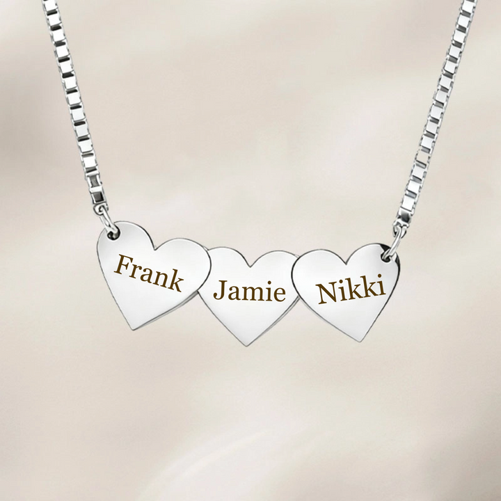 Tags: heart name necklace, three name jewelry, personalized family necklace, titanium steel jewelry, couple name necklace, valentine's day gift, engraved name jewelry, family love necklace, hypoallergenic jewelry, multi-name pendant