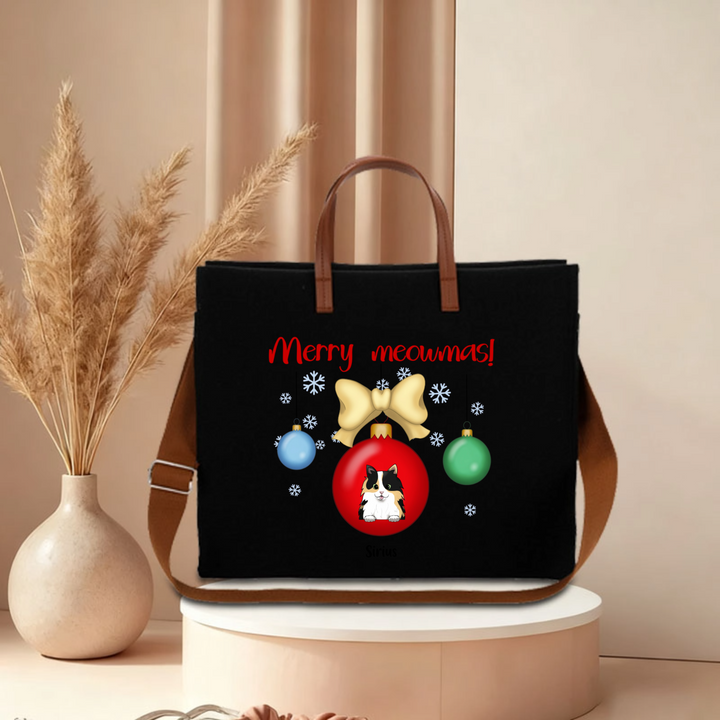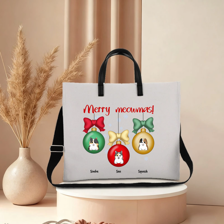 Merry meowmas! Personalized Tote Bag, Holiday Gift for Cat Lovers, Christmas Shopping and Daily Commute