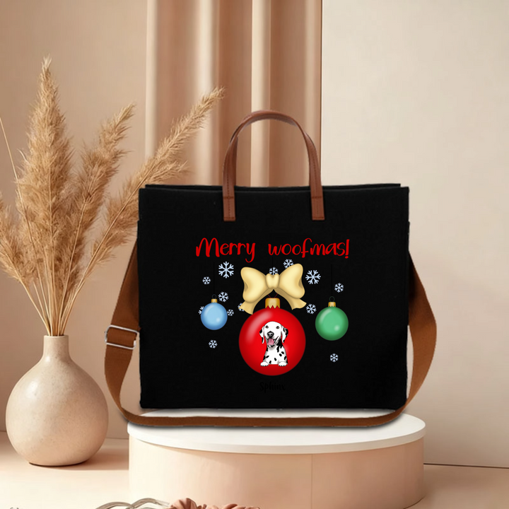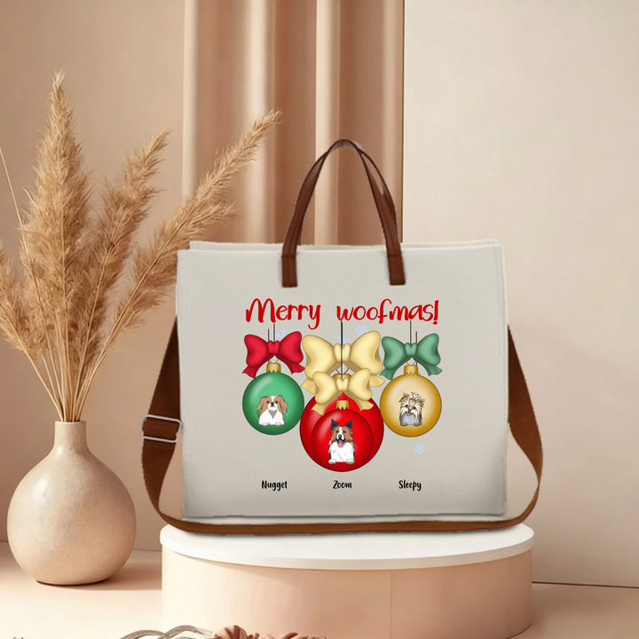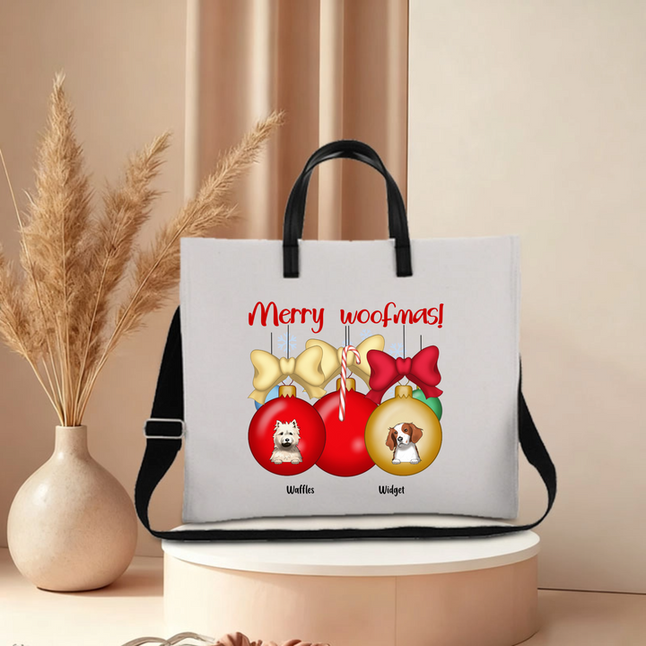 Merry Woofmas! Personalized Tote Bag, Holiday Gift for Dog Lovers, Christmas Shopping and Daily Commute