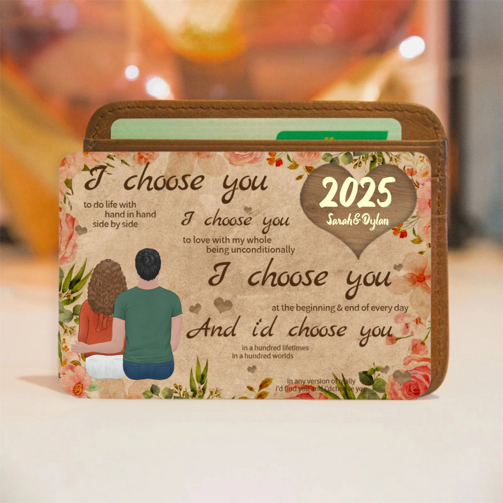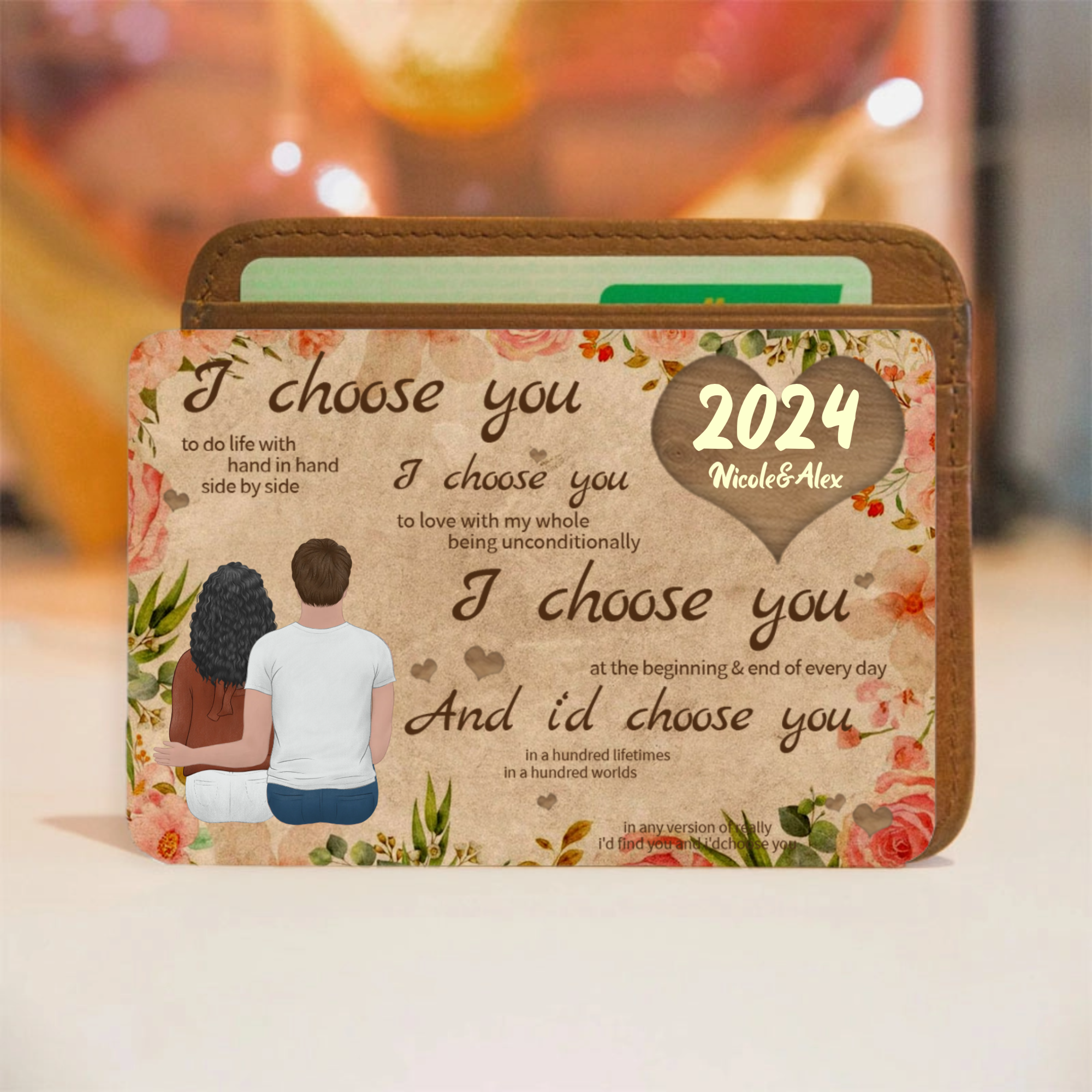 I Choose You Back View Couple Metal Wallet Card, Personalized Horizontal Metal Wallet Card, A Timeless Valentine's Day Tribute