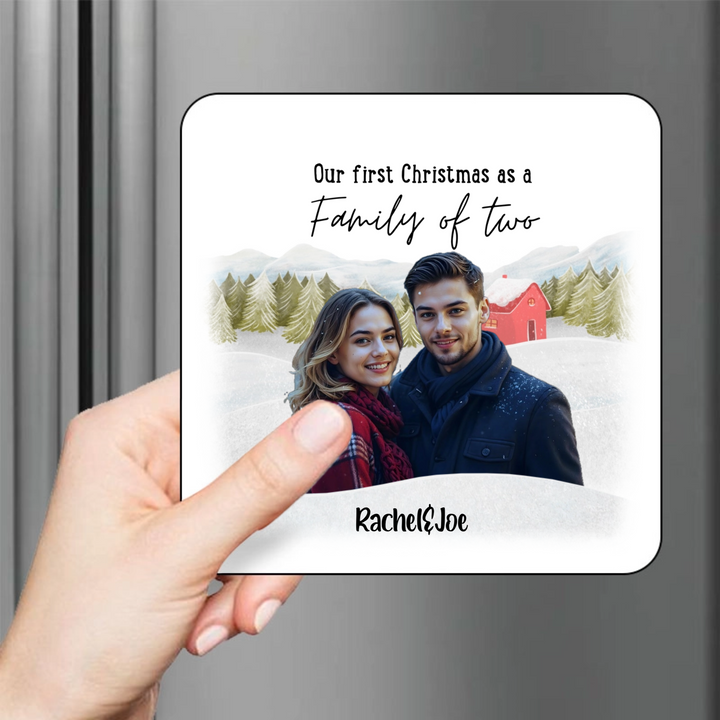 Tags: christmas fridge magnet, our first christmas together, personalized photo magnet, family christmas gift, couple holiday decor, custom name magnet, density board magnet, christmas memory keepsake, newlywed christmas gift, family milestone magnet