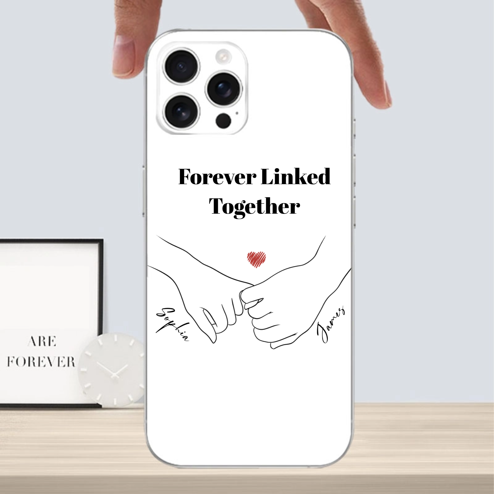 Carry your connection wherever you go with this beautifully personalized Hand in Hand phone case! Featuring an elegant hand-drawn design of two hands connecting with a heart symbol, this case can be fully customized with your names and a special quote. Whether it's for your partner, best friend, or spouse, this thoughtful design turns your phone into a daily reminder of the special bond you share.