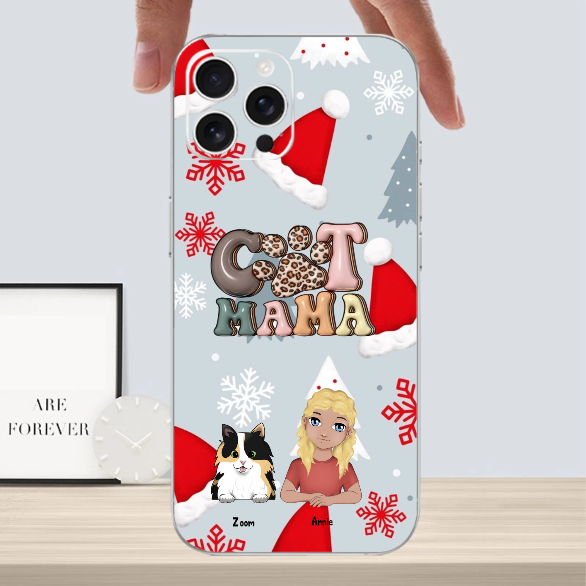 Personalized Christmas Pet Mom Phone Case, Custom Cat Mama Dog Mama Gift for Pet Parents