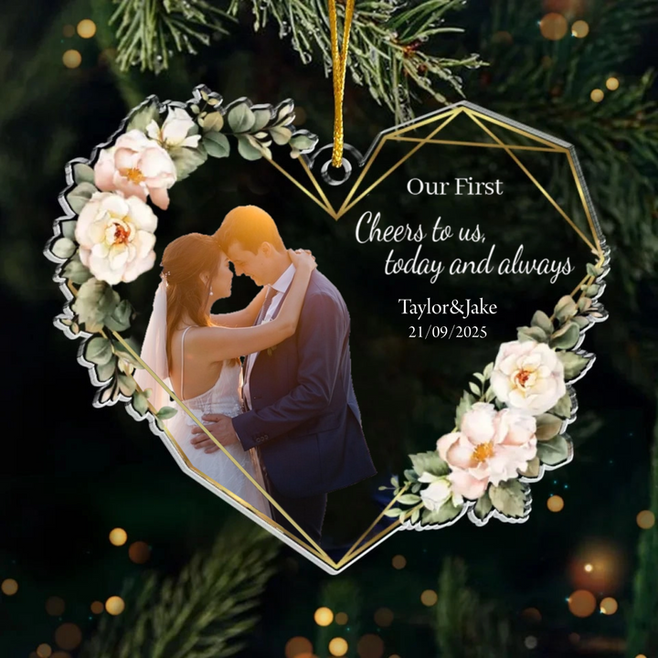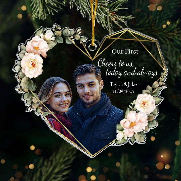Choose from romantic phrases like "Our First" or "Cheers to us, today and always"