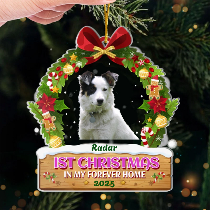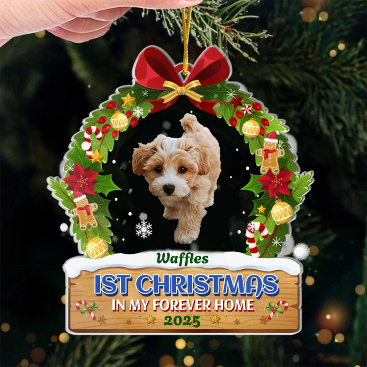 Custom Photo First Christmas In My Forever Home, Dog & Cat Personalized Custom Ornament, Acrylic Custom Shaped, Christmas Gift For Pet Owners, Pet Lovers