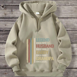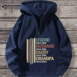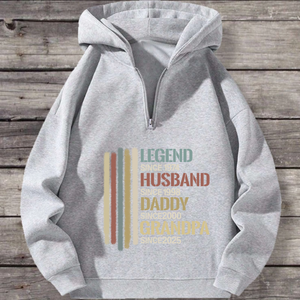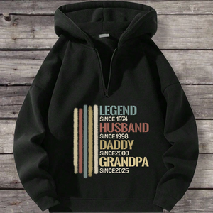 Honor the man who has been everything: a legend, a husband, a dad, a grandpa. This premium polyester hoodie is a wearable timeline of his most important roles. Featuring a timeless vintage stripe design and the iconic "LEGEND SINCE..." text, it can be fully personalized with the years that mark his journey. Soft, comfortable, and made for everyday wear, itâs the ultimate sentimental gift that tells his unique story.