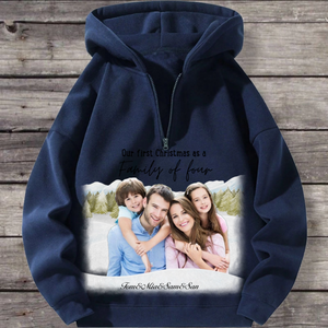 Create a wearable memory that captures the magic of your first Christmas together as a family! Our personalized photo hoodie lets you showcase your favorite family photo with custom names and festive backgrounds. Whether you're a new family of three or celebrating with extended loved ones, this cozy hoodie turns your precious moment into a heartwarming holiday tradition you can wear season after season.
