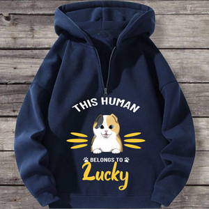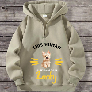 Turn the tables on pet ownership with this hilarious and heartwarming hoodie. Your furry boss can finally declare that you belong to them! Our "This Human Belongs To" personalized hoodie lets you choose a cute cat or dog design, select a breed style, and proudly display your pet's name. Made from soft, cozy 100% polyester, itâs the ultimate conversation starter and the perfect, comfortable gift for any proud pet parent.