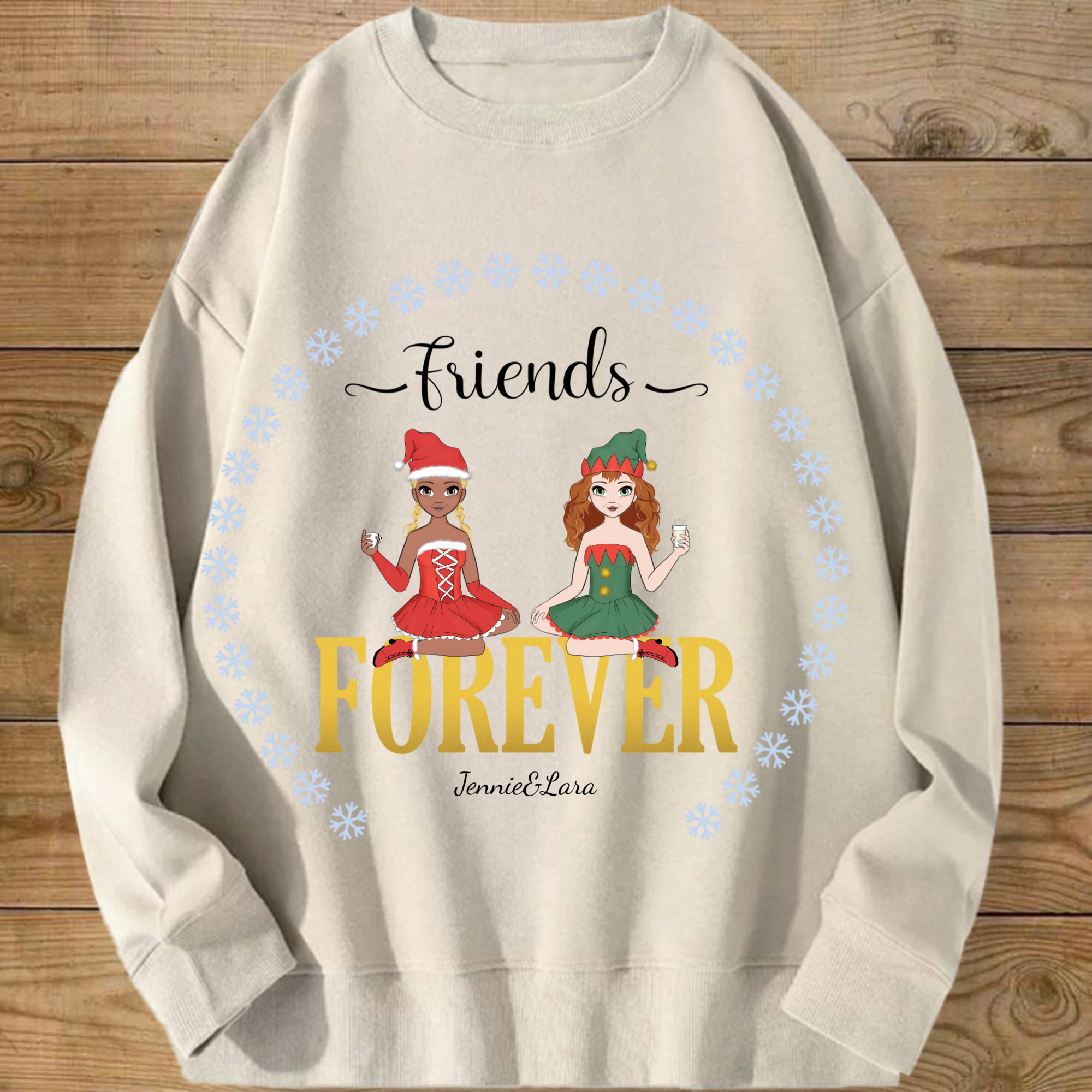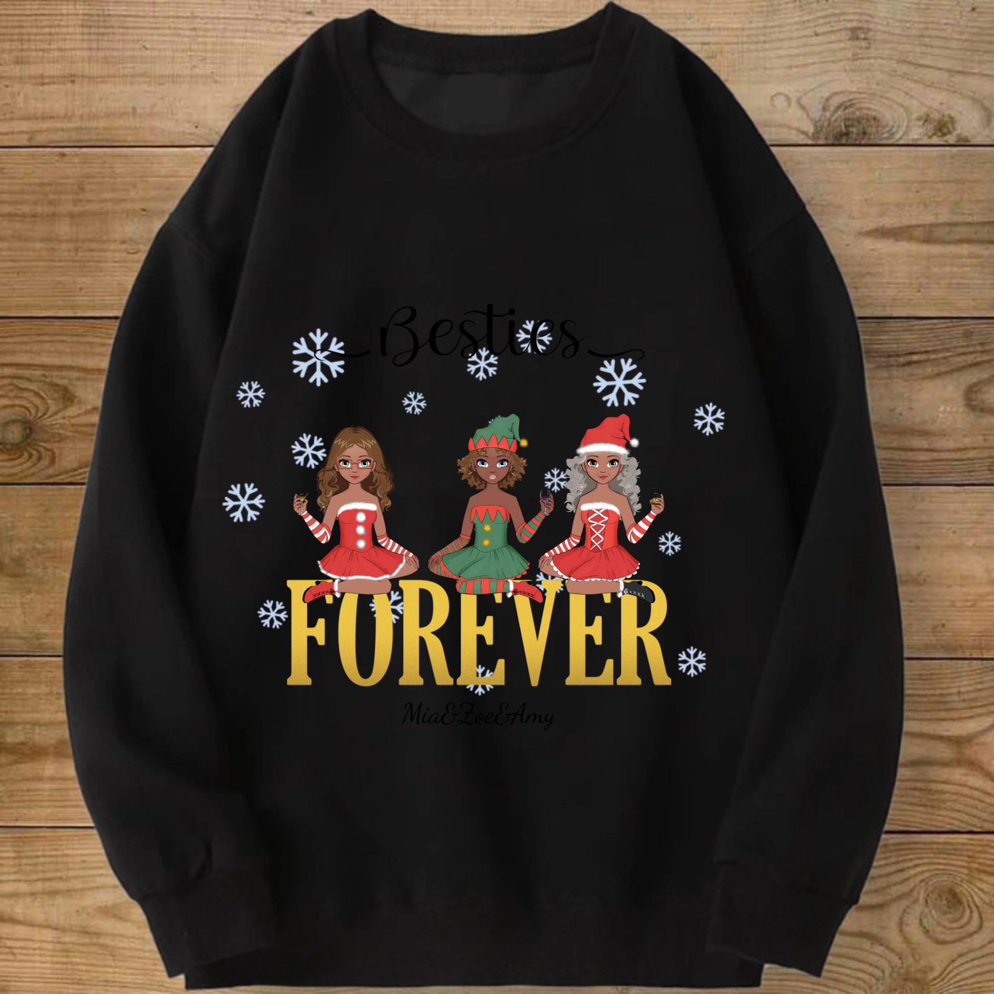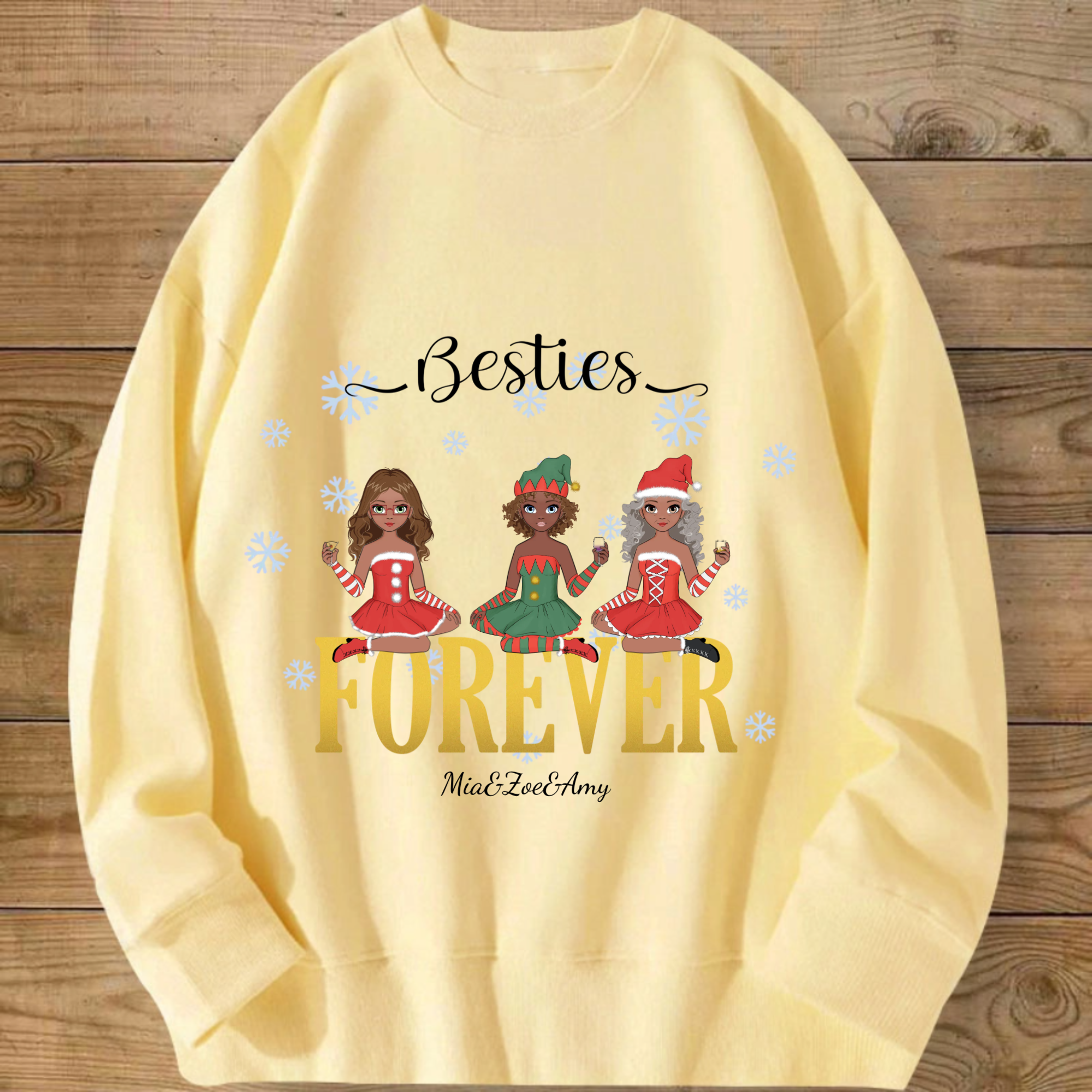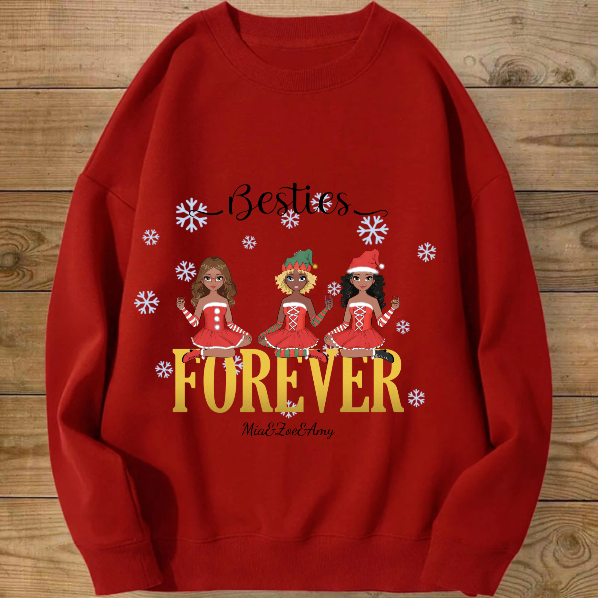 Personalized Besties Forever Sweatshirt, Custom Anime Style Friend Group Pullover with 1-4 woman, Gift for Women Friends on Christmas & Birthdays, Unisex Fit
