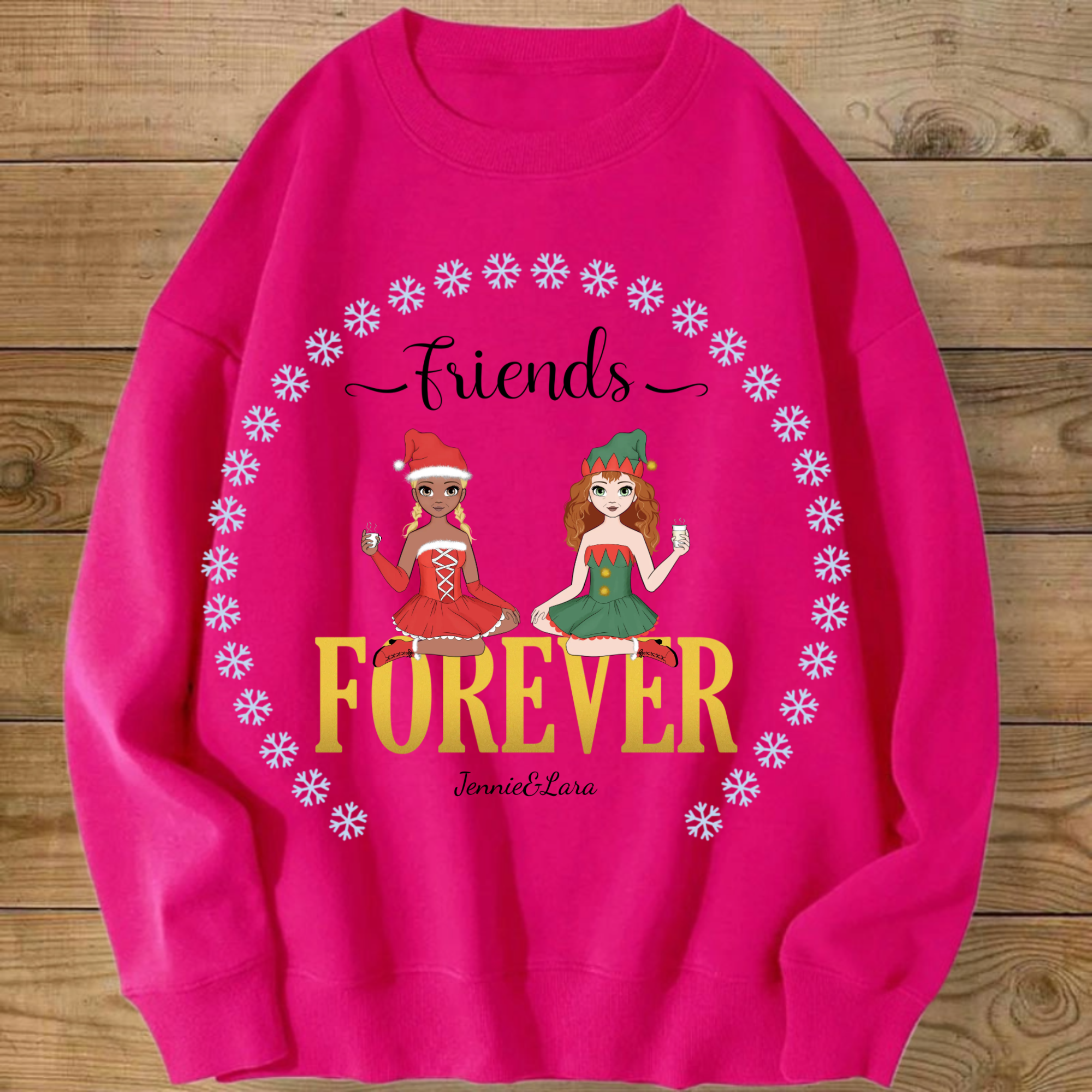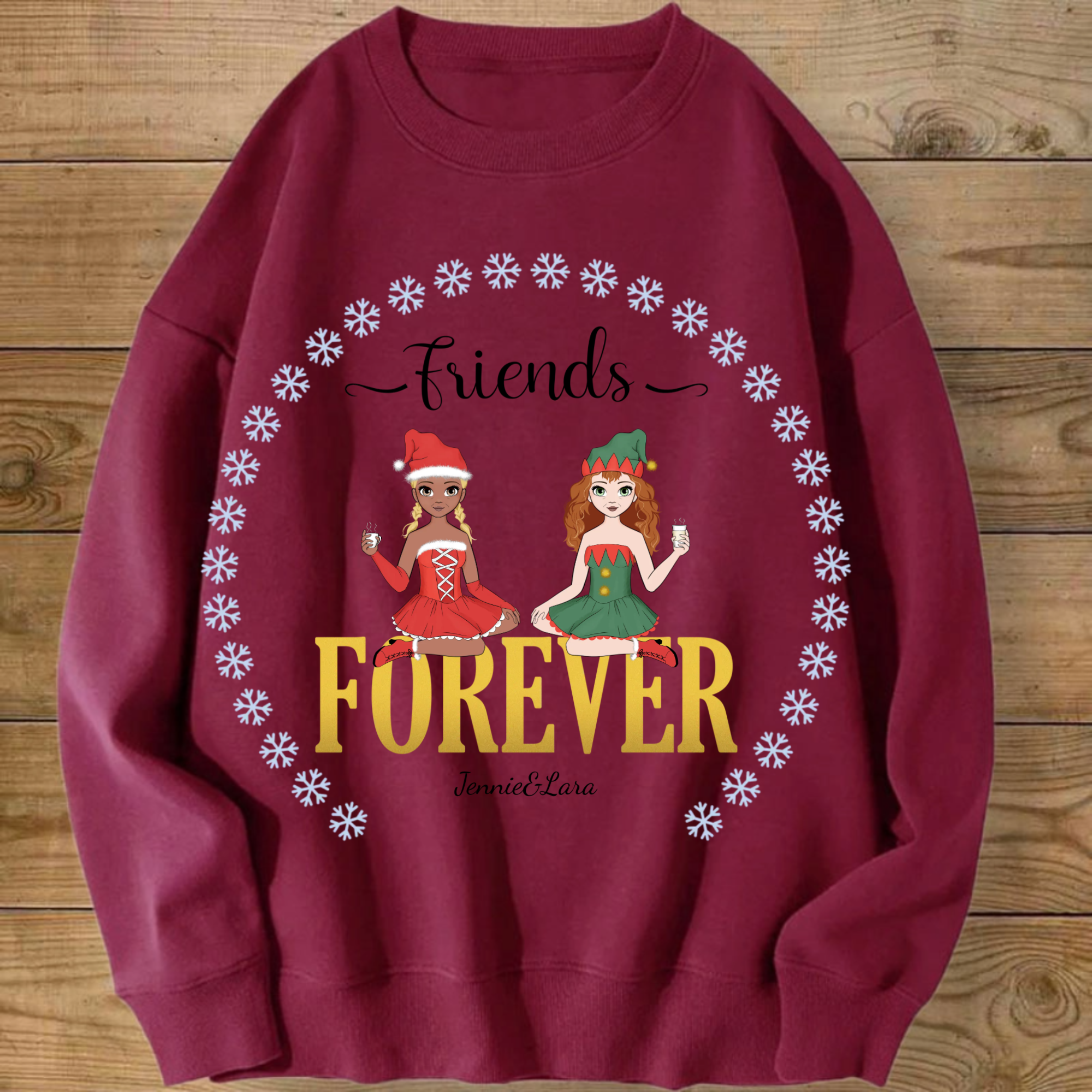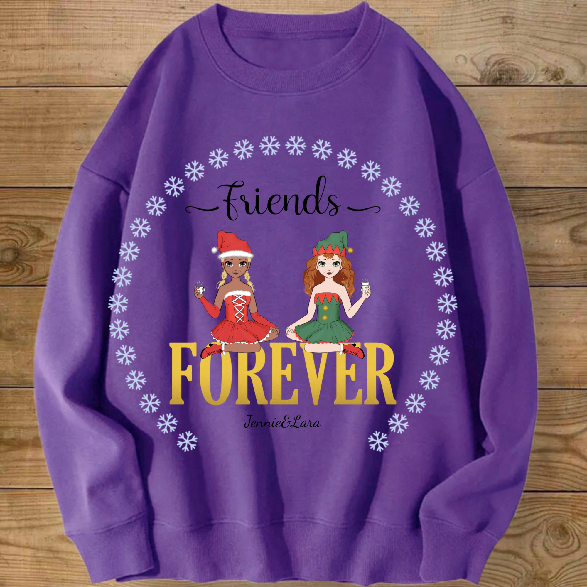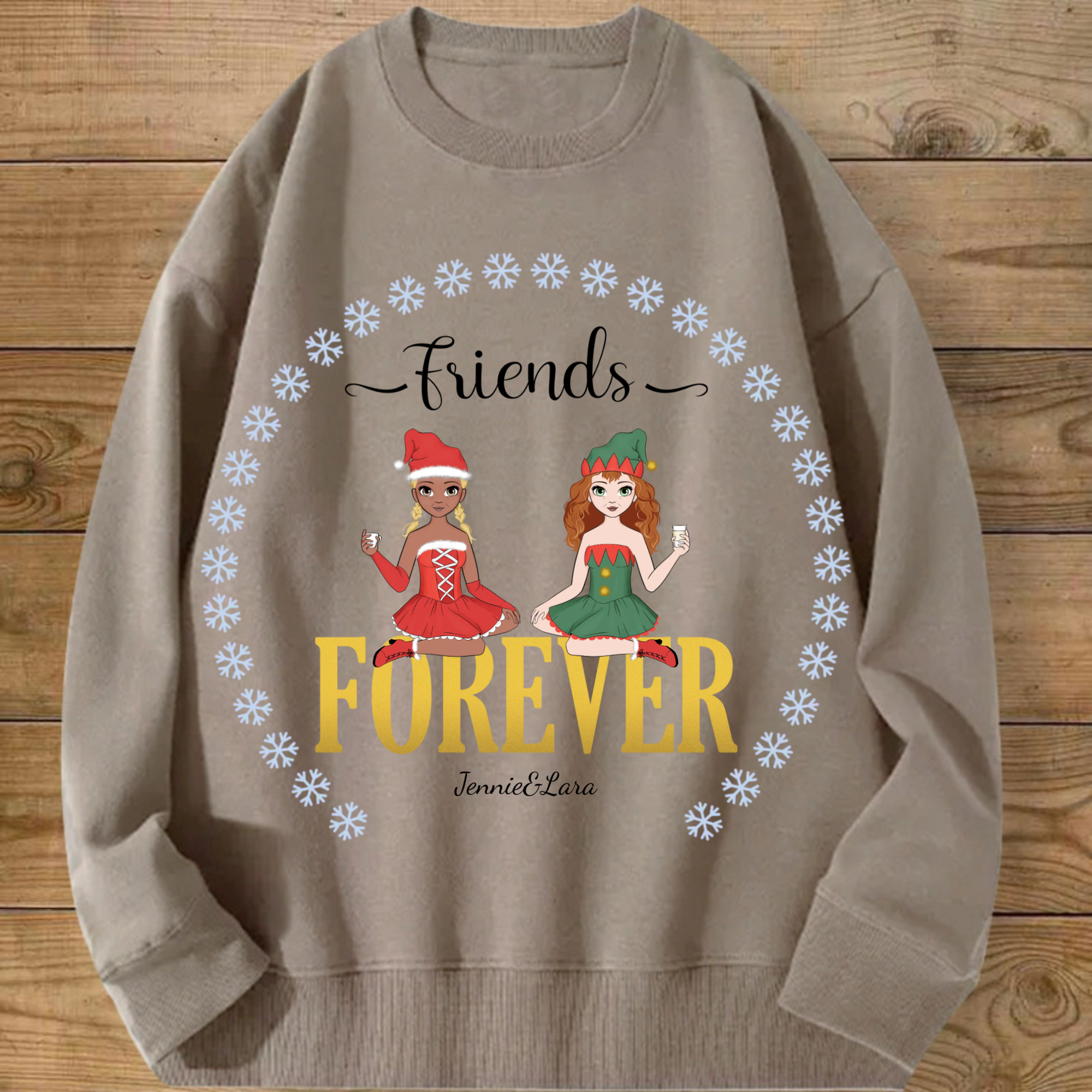 Personalized Besties Forever Sweatshirt, Custom Anime Style Friend Group Pullover with 1-4 woman, Gift for Women Friends on Christmas & Birthdays, Unisex Fit