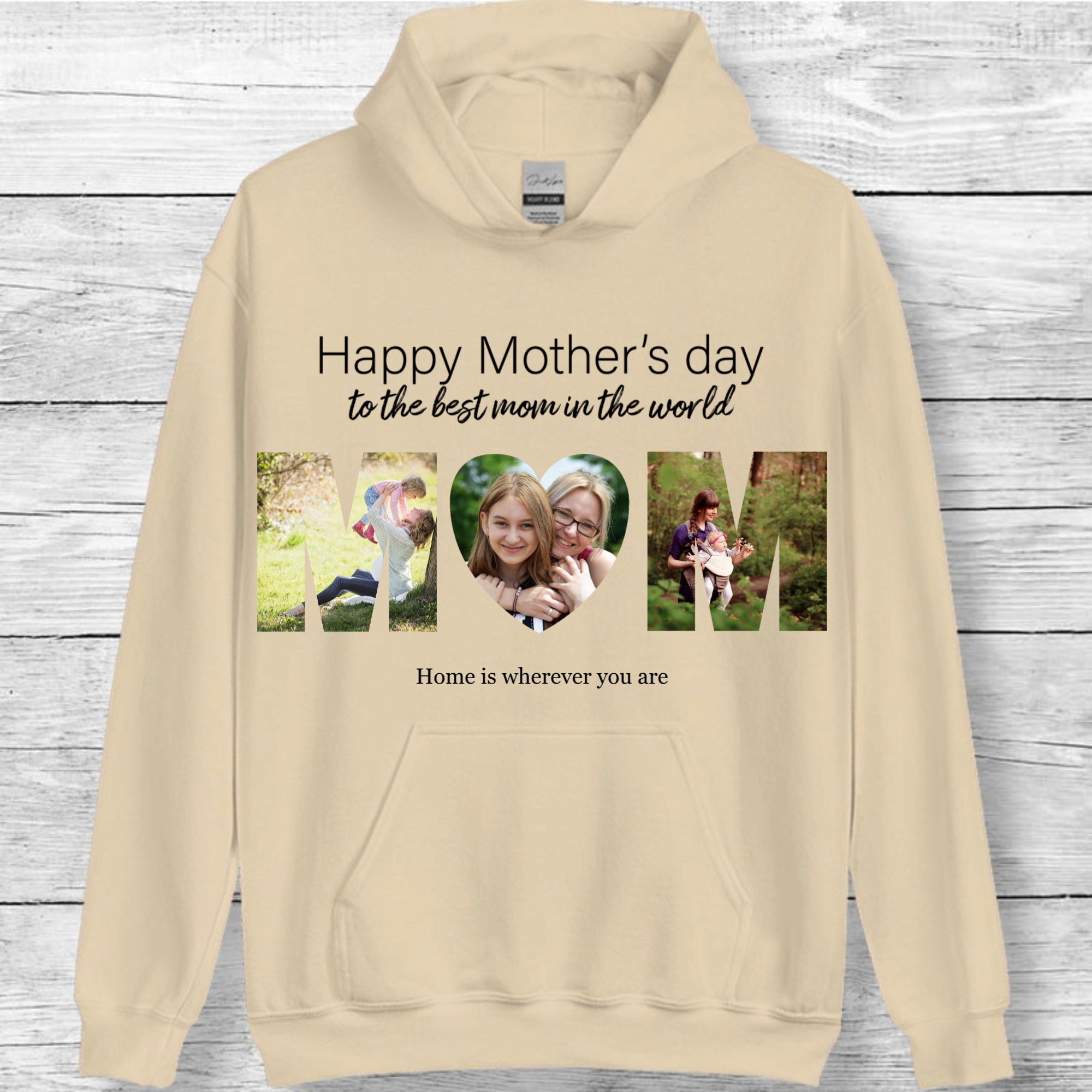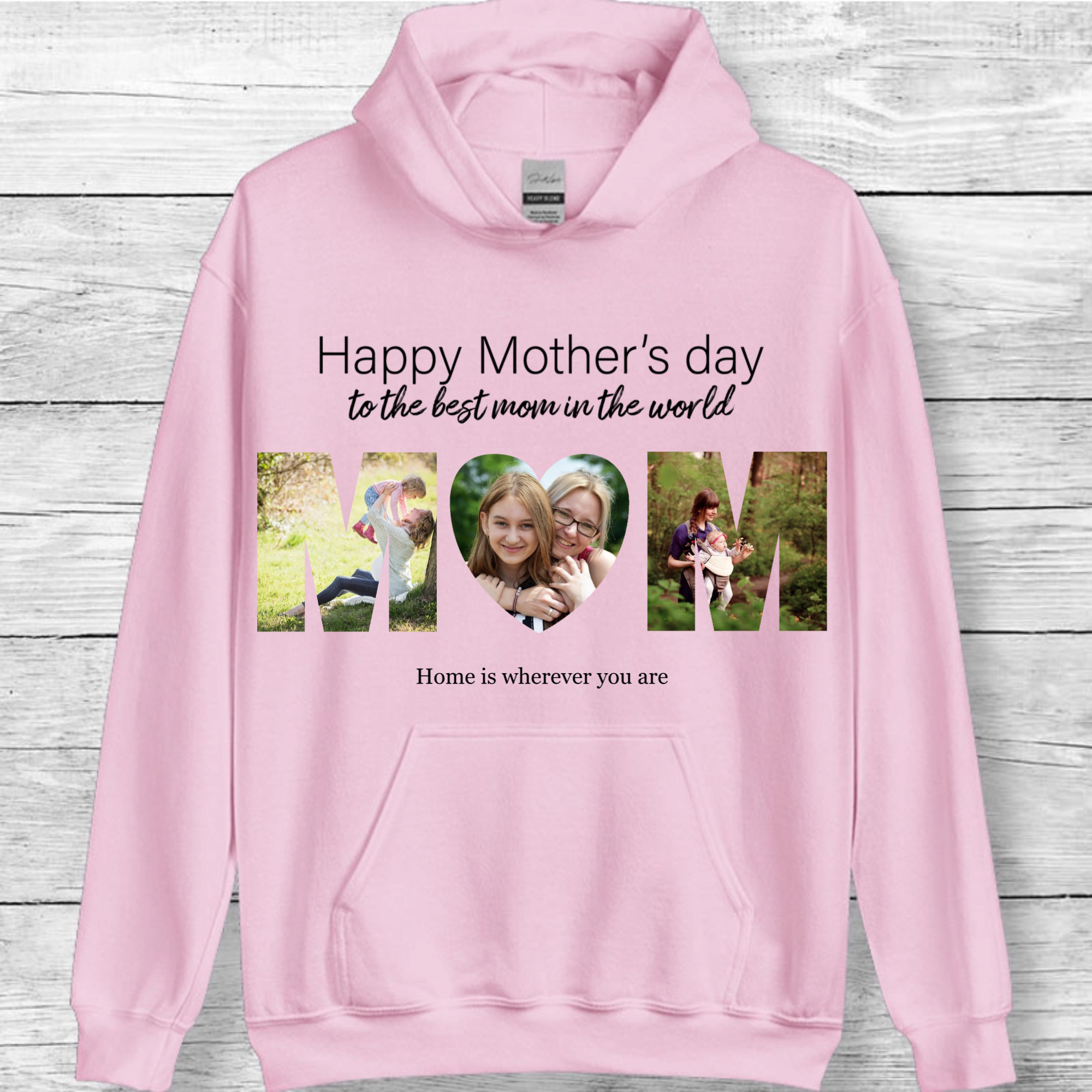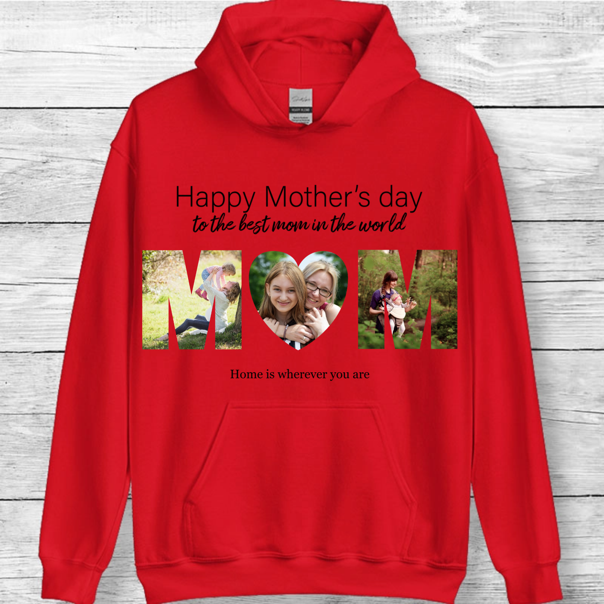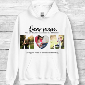 Imagine a cozy hoodie that celebrates the most important woman in your life. Our personalized Mom Photo Hoodie creatively arranges 3 precious photos to form the word "MOM," paired with a heartfelt message of your choice. This unique design transforms cherished memories into a wearable tribute to motherhood.