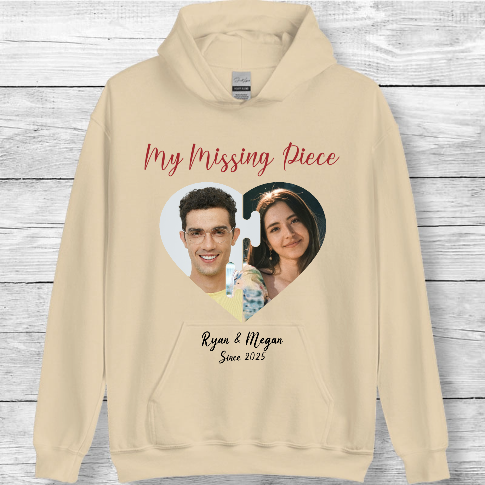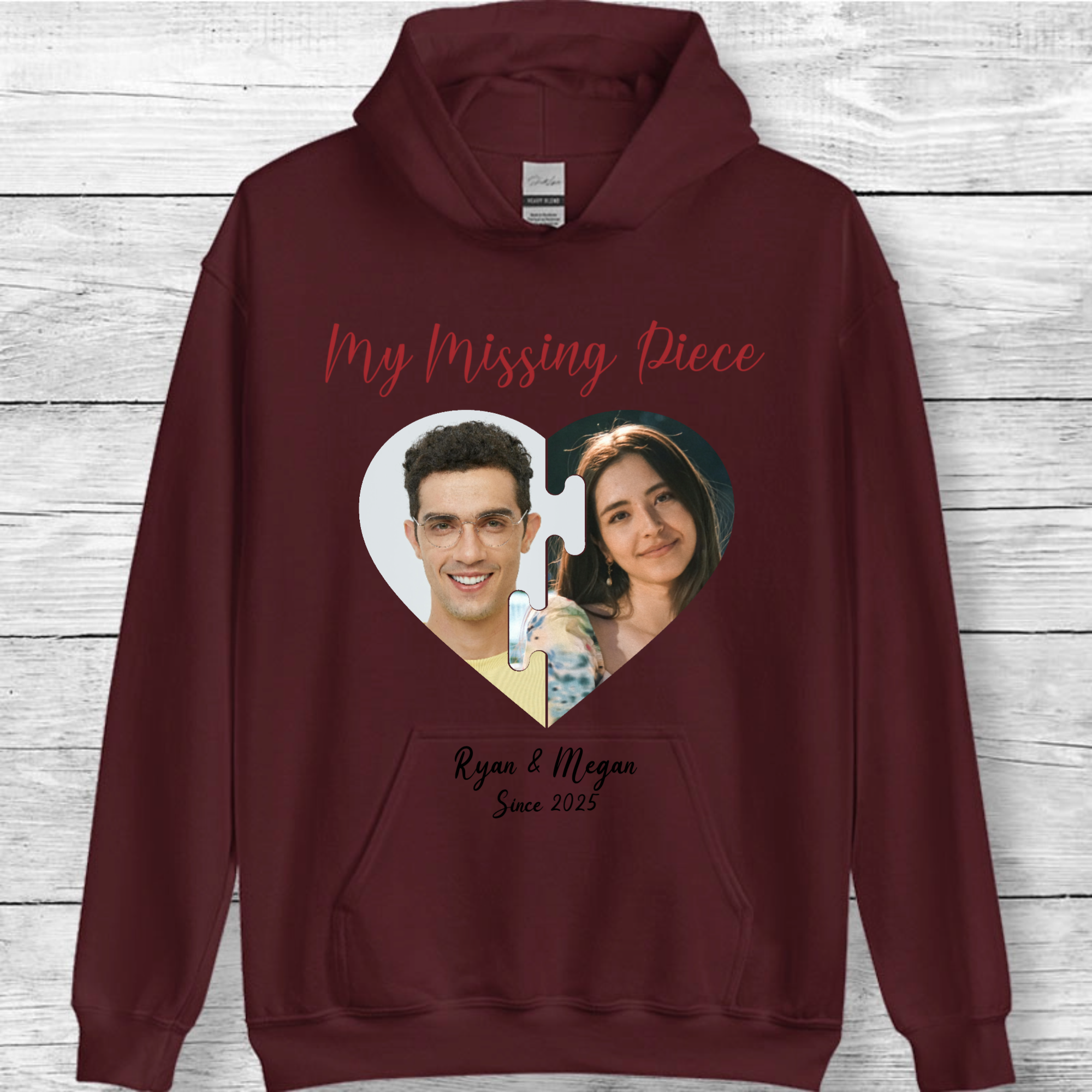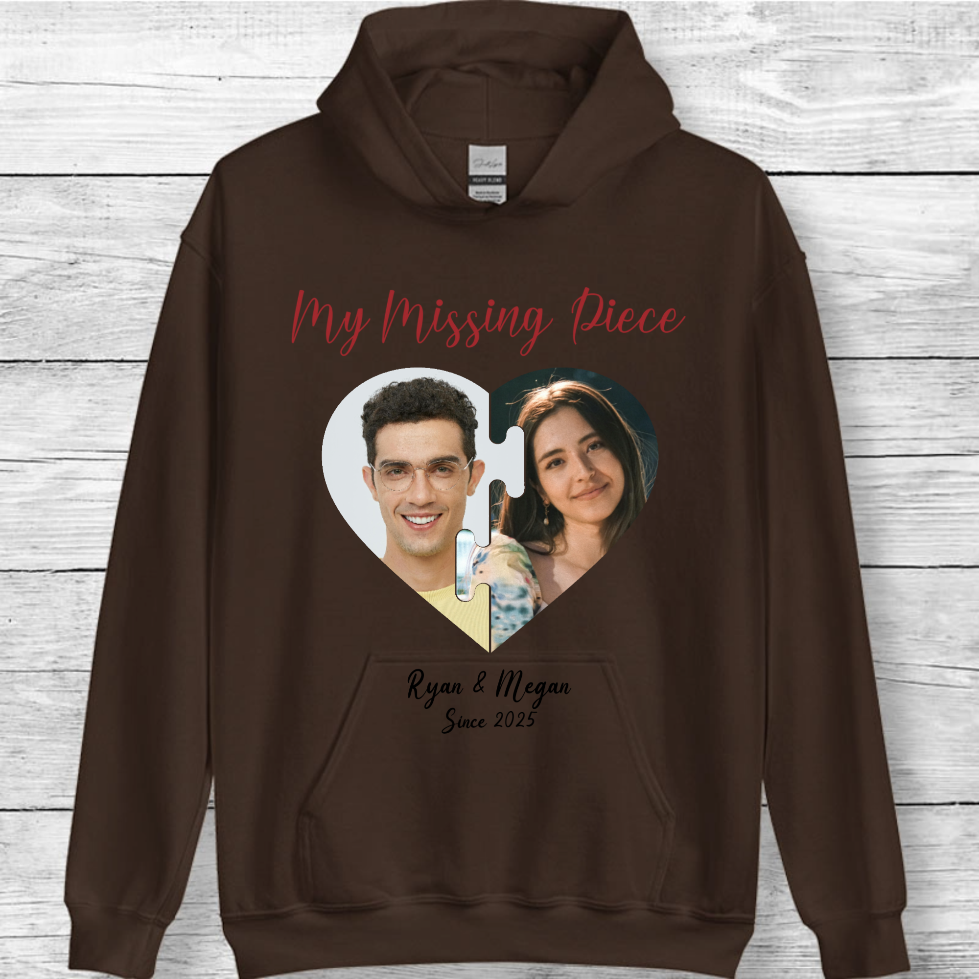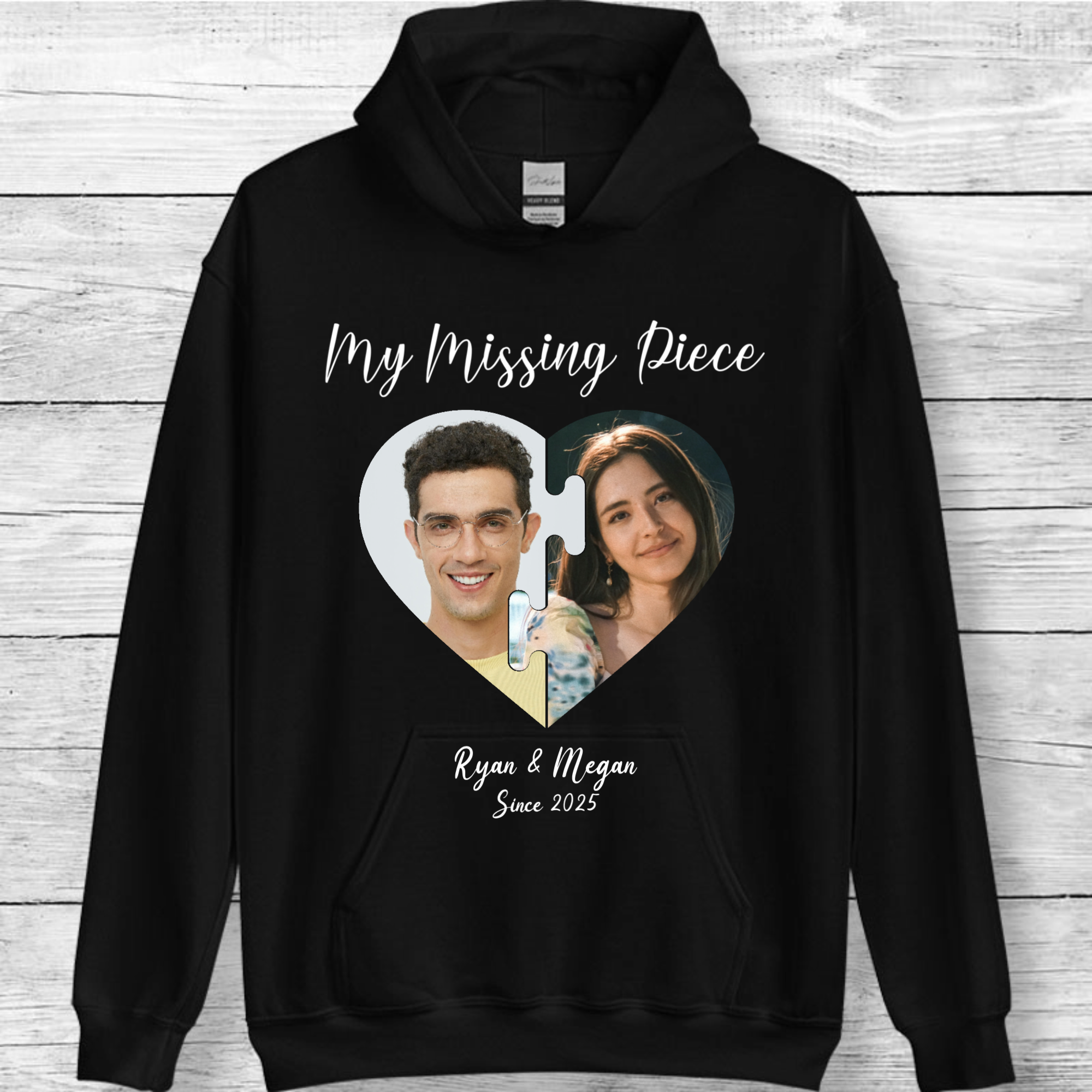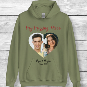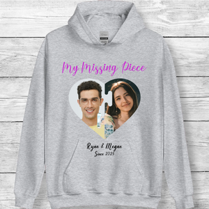 Personalized My Missing Piece Photo Hoodie, Romantic Gift for Couples, Anniversary and Valentine's Day, Unisex Fit