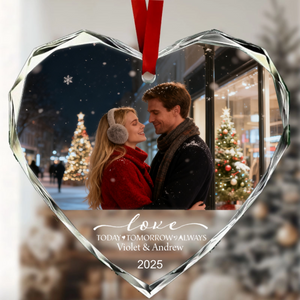 Preserve your most precious moments with our Eternal Love Heart Crystal Ornament. This exquisite heart-shaped keepsake features a custom photo of you and your loved one, beautifully displayed within premium optical crystal. Engraved with romantic messages like "forever" or "TODAY TOMORROW ALWAYS," it creates a timeless tribute to your relationship. Perfect for commemorating weddings, anniversaries, or simply celebrating your unique bond.