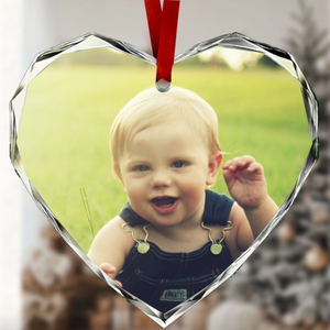 Preserve your most cherished memories with our exquisite Heart-shaped Crystal Ornament. This elegant 7x7cm keepsake features brilliant clarity and a delicate red satin ribbon, creating the perfect showcase for your favorite photo. Whether it's a romantic couple moment, a family portrait, or a special friendship, upload any image to create a unique decoration that turns your memories into timeless treasures. Perfect for hanging on Christmas trees, as home decor, or as a heartfelt personalized gift.