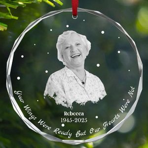 Personalized Photo Crystal Ornament Keepsake - Your Wings Were Ready Memorial Circle for a Loved One, Meaningful Christmas Tree Gift