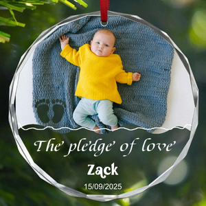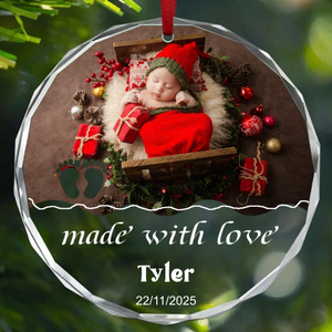 Capture the precious early moments of your little one with our "Made with Love" crystal ornament. This beautifully crafted circular keepsake features a customizable photo of your baby, accompanied by their name and a special date. The elegant "Made with Love" text adds a touch of warmth, making it a perfect way to commemorate the arrival of your newest family member. Whether for a baby shower, christening, or simply to cherish those first few months, this ornament turns fleeting moments into timeless memories.