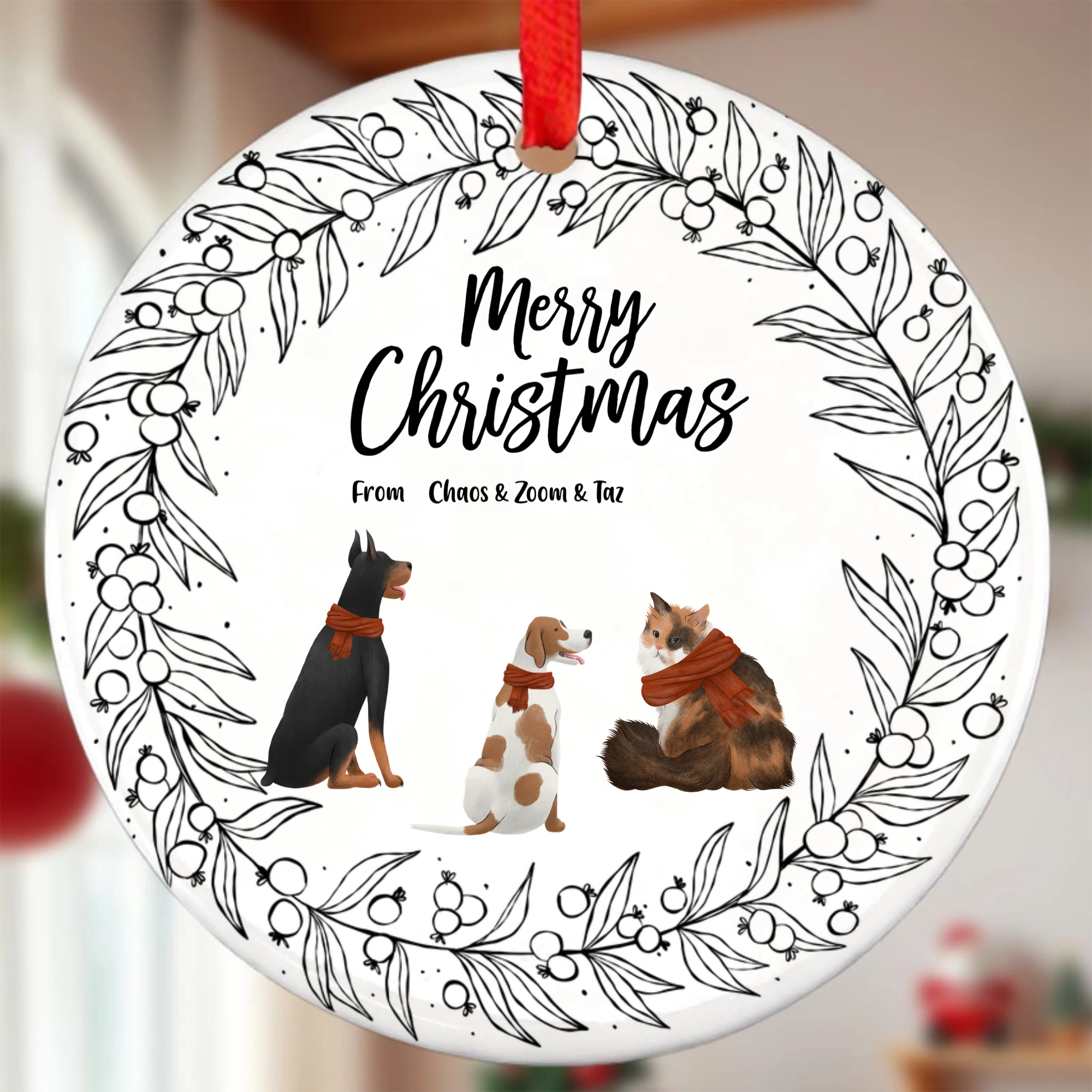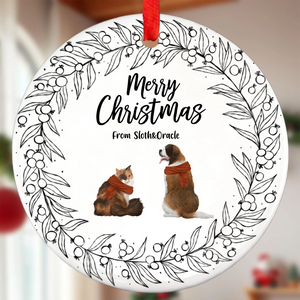Personalized Christmas Ceramic Round Hanging Ornaments, Unique Decorative Items For Pet Lovers