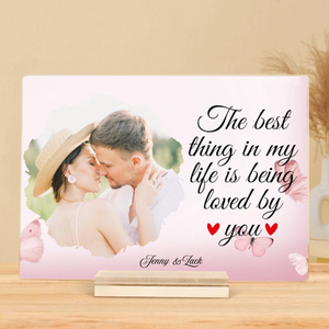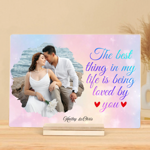Create a timeless tribute to your relationship with our personalized Acrylic Plaque. Featuring an elegant heart-shaped photo cutout and the romantic quote "The best thing in my life is being loved by you,"this plaque can be fully customized with your photo, names, font colors, and background. Perfect for displaying cherished moments of couples, it turns memories into a beautiful decorative piece for any space.