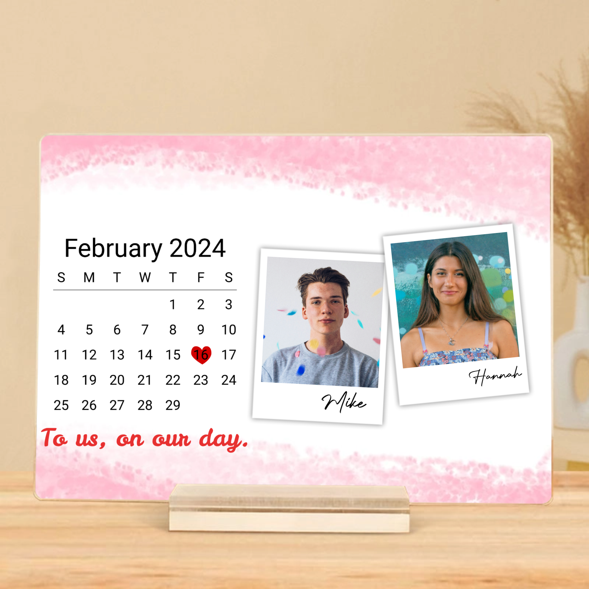 Customization: 2 Photos, 2 Names, Calendar (Month/Year/Highlighted Date), Custom Love Note