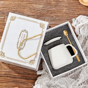 High-Quality Materials: Premium ceramic mug, gold-accented spoon, and elegant lid.