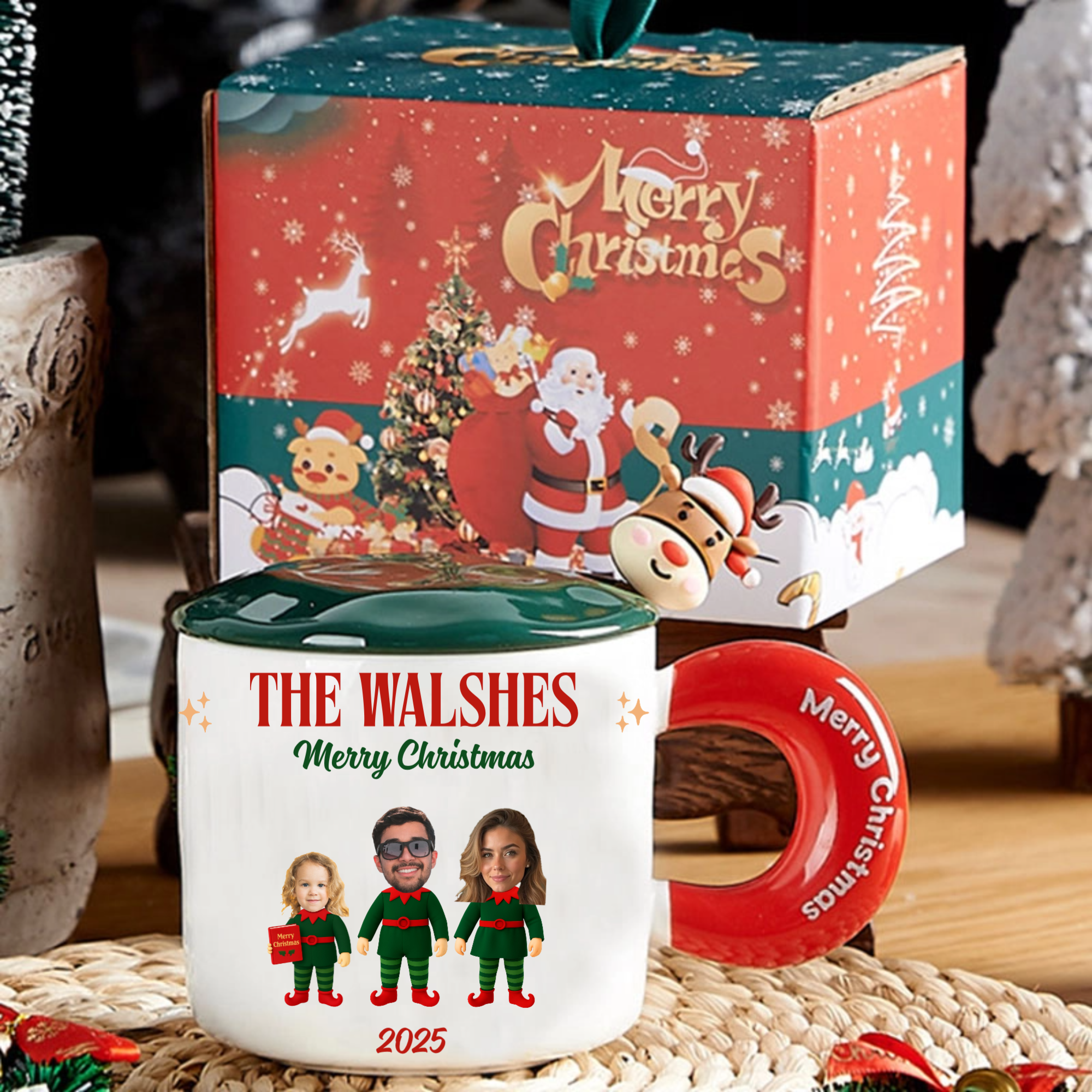 Personalized Elf Family Photo Mug Gift Set, Complete Gift for Families, Christmas Lovers